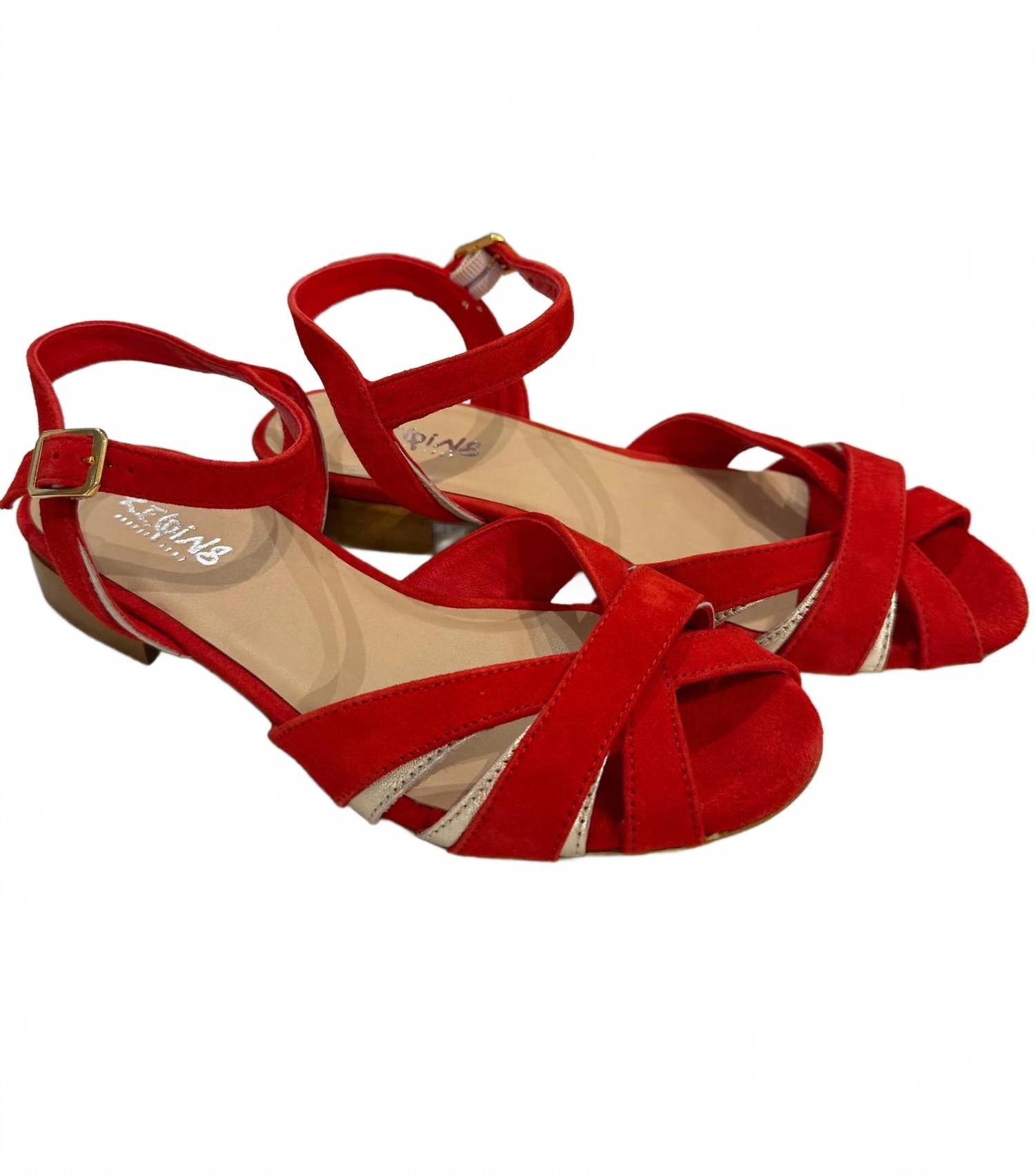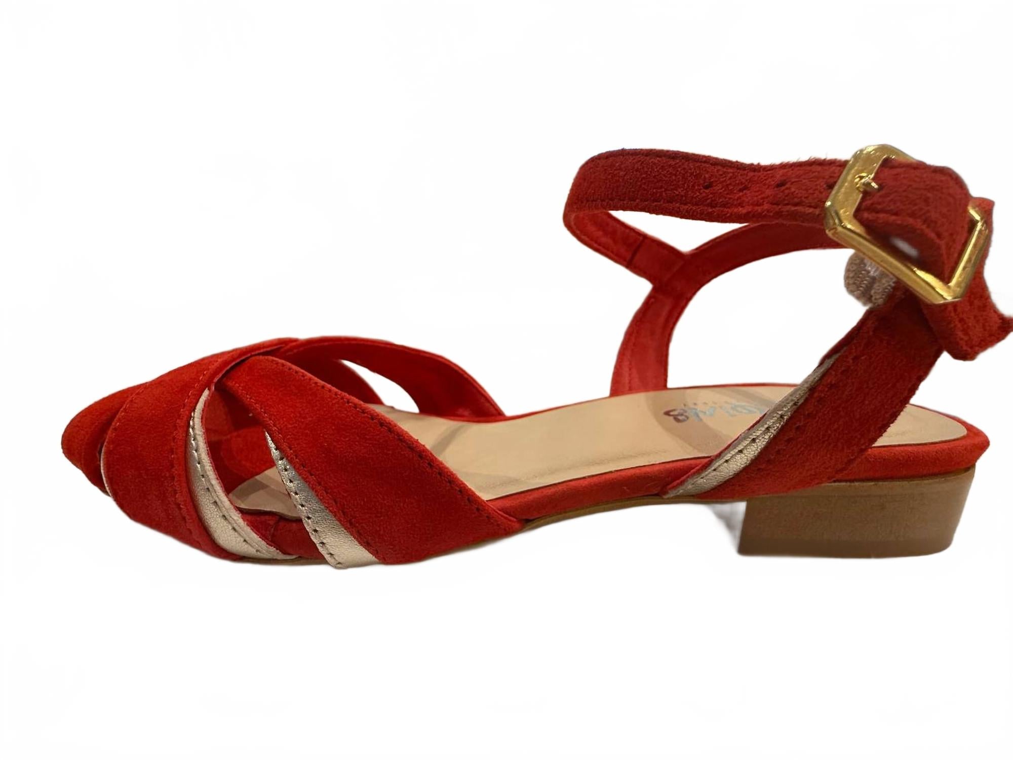 Эти босоножки подойдут как для бранча, так и для ужина, и для всего, что между ними. Представляем женские босоножки Palma от Reqins - великолепный выбор для летних вечерних мероприятий. Эти красные босоножки с ремешками, выполненные из роскошной бархатистой замши, украшены элегантными золотыми металлическими пряжками и каблуком-катушкой, придающим им нотку изысканности. Высота каблука всего 1,5 см гарантирует комфорт без ущерба для стиля. Эти босоножки, искусно изготовленные в Тунисе, воплощают в себе сдержанный тренд на роскошь благодаря вневременному дизайну с открытым носком.