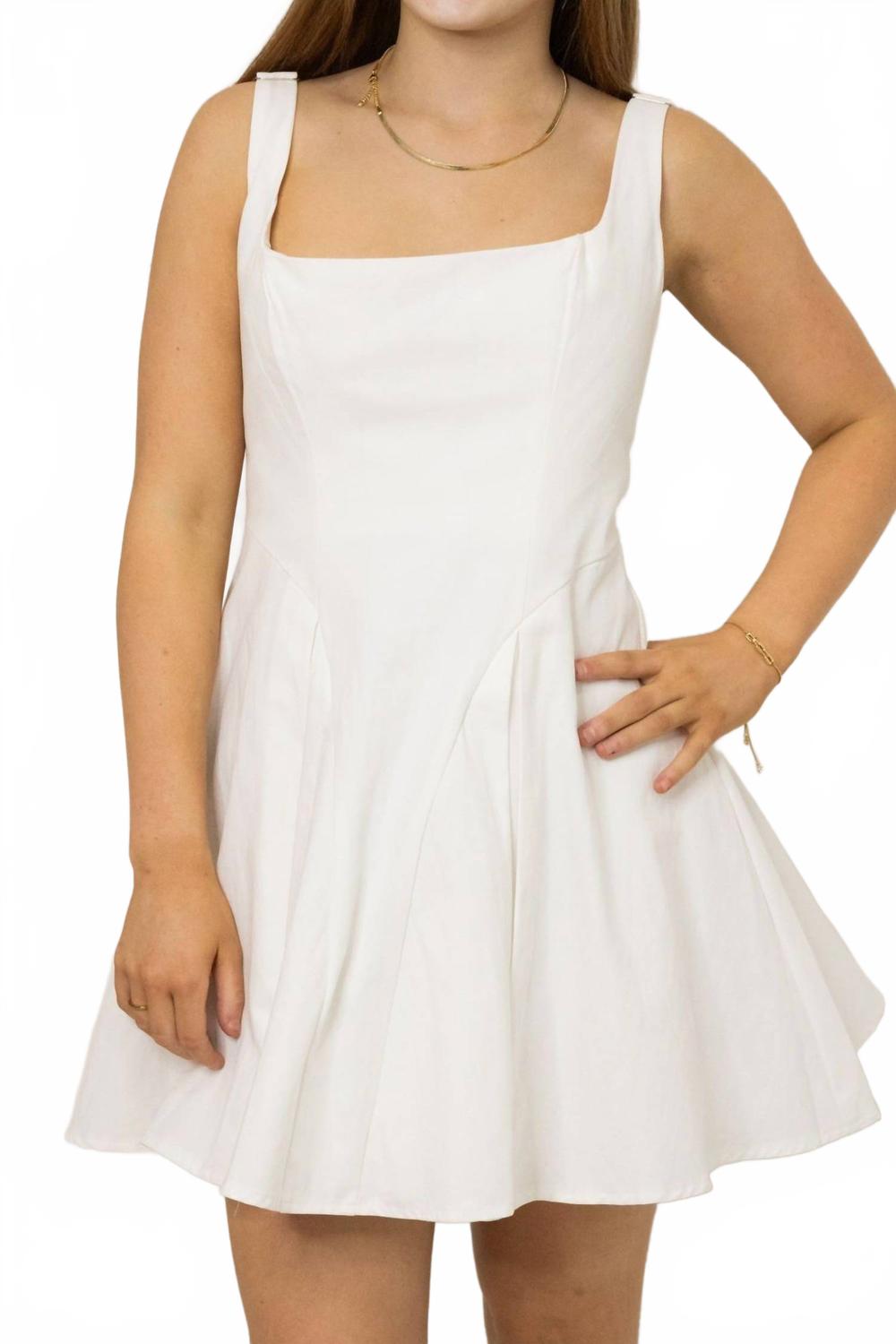 Представляем мини-платье Ivy от One and Only Collective - стильный выбор для любого весеннего случая в классическом белом цвете. Это платье А-силуэта без рукавов с квадратным вырезом, регулируемыми бретелями и застежкой-молнией на спине обеспечивает идеальную посадку. Состав: 90% полиэстер и 10% спандекс, оно обеспечивает комфорт и выгодно подчеркивает фигуру благодаря плиссированной юбке. Рекомендации по уходу: ручная стирка в холодной воде отдельно, сушка в тени и глажка утюгом при необходимости. Рост модели: 148 см, размер S.