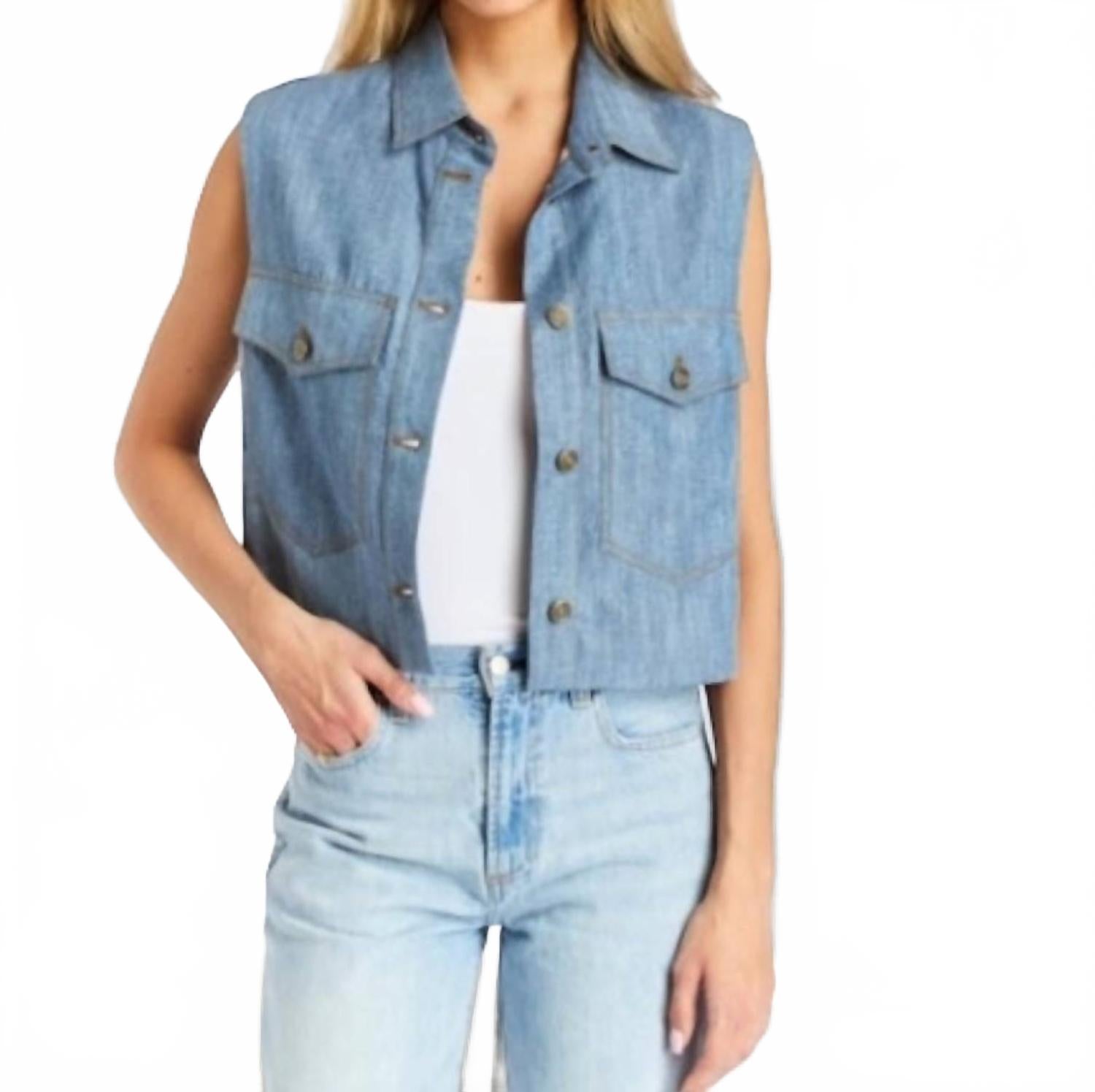 Накиньте этот жилет поверх полностью черного наряда, чтобы создать идеальный образ. Подчеркните свой стиль с жилетом Tristian от DREW - джинсовой безрукавкой эффектного выбеленного цвета. Этот жилет, изготовленный из 100% тенселя с подкладкой из 65% полиэстера и 35% хлопка, выглядит современно и в то же время неподвластно времени. Сделано в США. Он имеет классический воротник, застежку на пуговицы и практичные нагрудные карманы с клапанами. Идеально подходит для ношения поверх майки, футболки или платья. Инструкции по уходу: только химчистка для сохранения естественной прохлады.