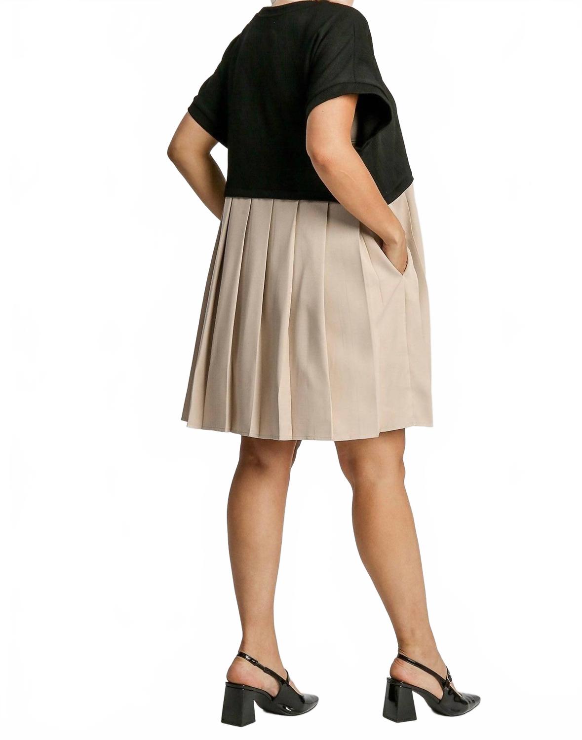 Жаккардовое плиссированное платье черно-коричневое Umgee