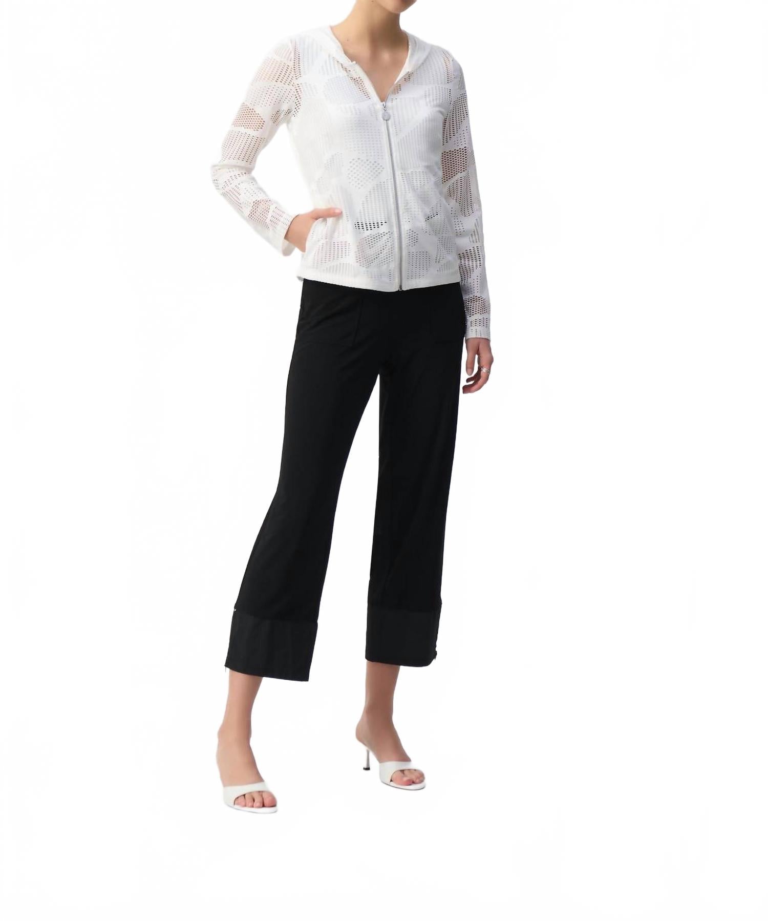 Приятная ткань, безупречный дизайн - встречайте толстовку, которую вам не захочется снимать. Сохраняйте стиль во время путешествий с худи Mesh Hoody от Joseph Ribkoff в бежево-белом цвете, созданной для женщин, ценящих стильный комфорт. Эта легкая куртка с фактурным узором вязки дополнена длинными рукавами и модным воротником-капюшоном. Прямой силуэт дополняется практичными боковыми карманами и застежкой-молнией спереди. Этот свитер идеально подходит для летних поездок. Инструкции по уходу за ним подразумевают бережное обращение, чтобы сохранить его элегантность на долгие годы.