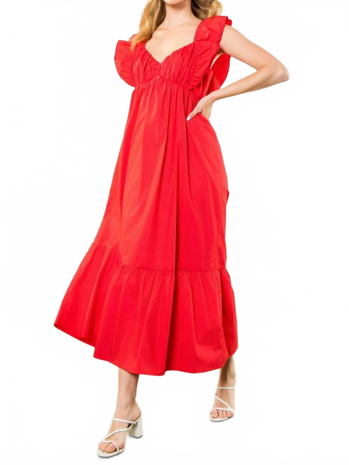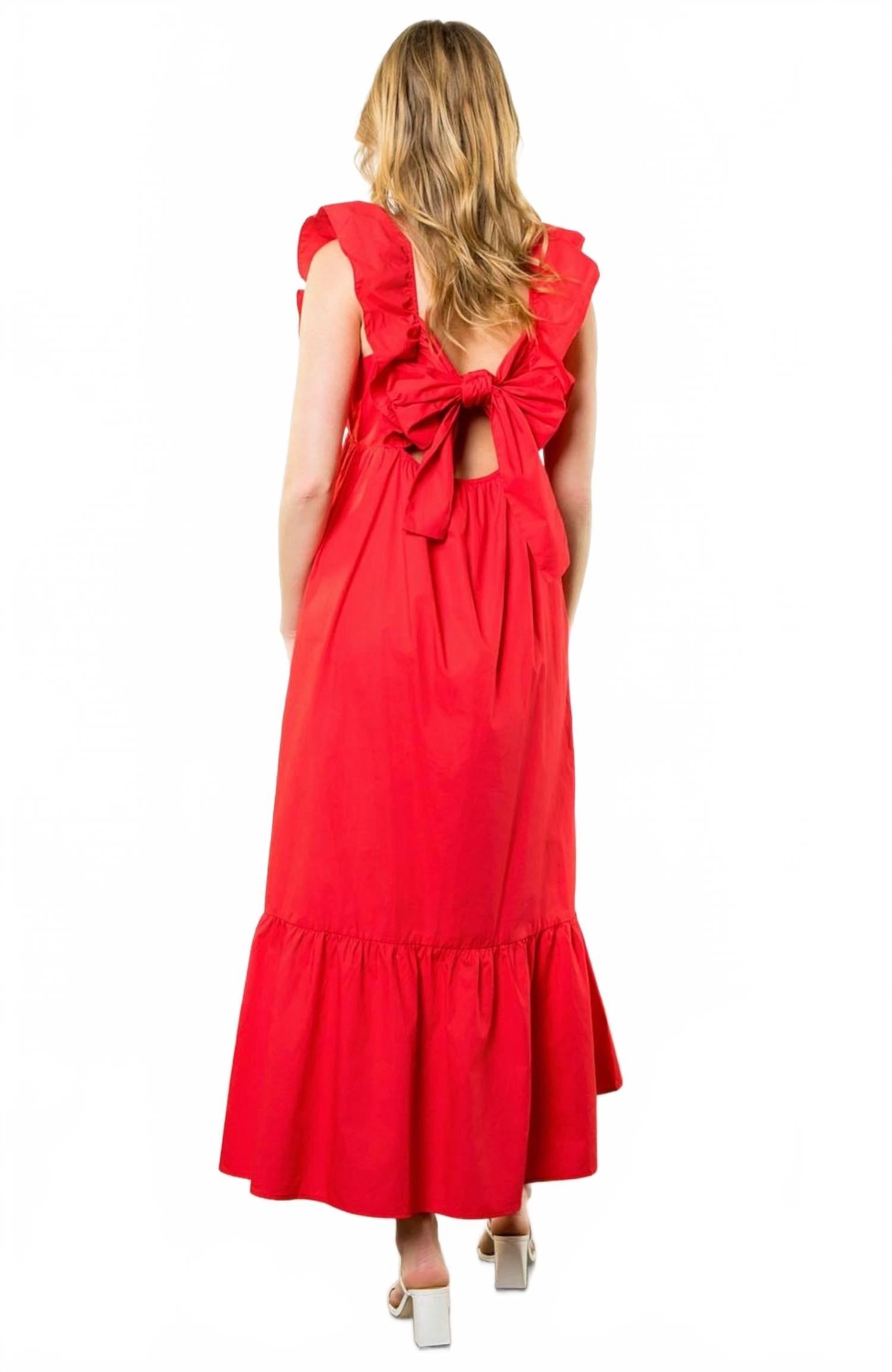 Платье миди настолько универсально, что ваши варианты его ношения безграничны. Окунитесь в атмосферу минималистичной элегантности с платьем Flutter Sleeve Poplin Dress от THML, которое идеально подходит для любой праздничной вечеринки. Это платье А-силуэта ярко-красного цвета с шикарными короткими рукавами и соблазнительным V-образным вырезом, дополненным очаровательным бантом сзади. Это платье миди из 100% хлопка - удобный и стильный выбор для летних мероприятий. Просто наденьте его, и он будет выглядеть непринужденно. Стирать и сушить в стиральной машине - одно удовольствие.