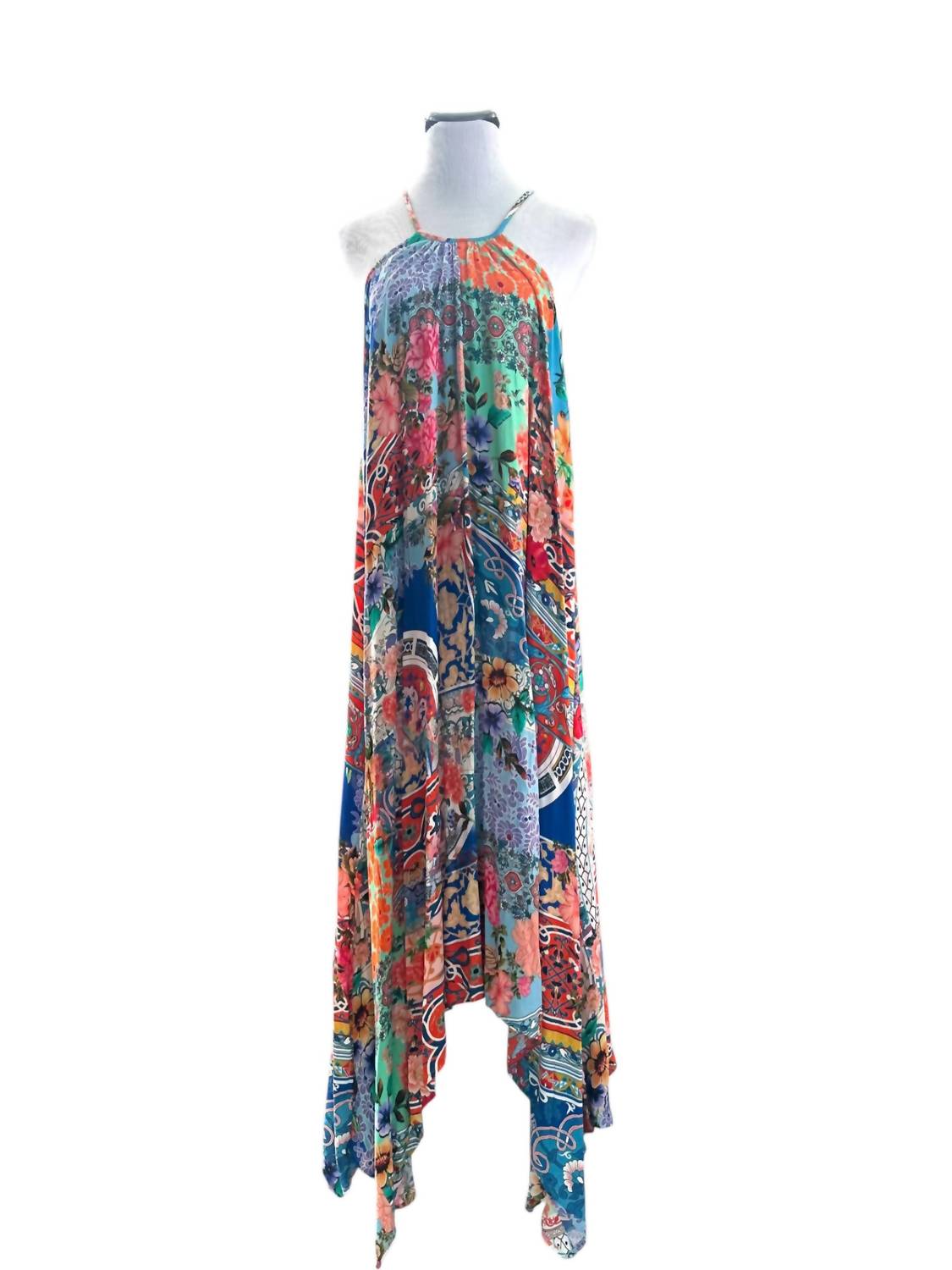 Ощутите непринужденную элегантность. Платье макси в стиле бохо с тонкими бретельками, американской проймой и застежкой-липучкой обеспечивает свободную и воздушную посадку. Многоцветный принт «Барселона» очаровывает сочетанием цветочных, пейсли и абстрактных узоров, создавая богемный образ, идеально подходящий для пляжных дней. Создано для тех, кто ценит свободу и стиль. Сочетание струящегося силуэта и асимметричного подола создает шикарный образ для курорта. Ручная стирка.