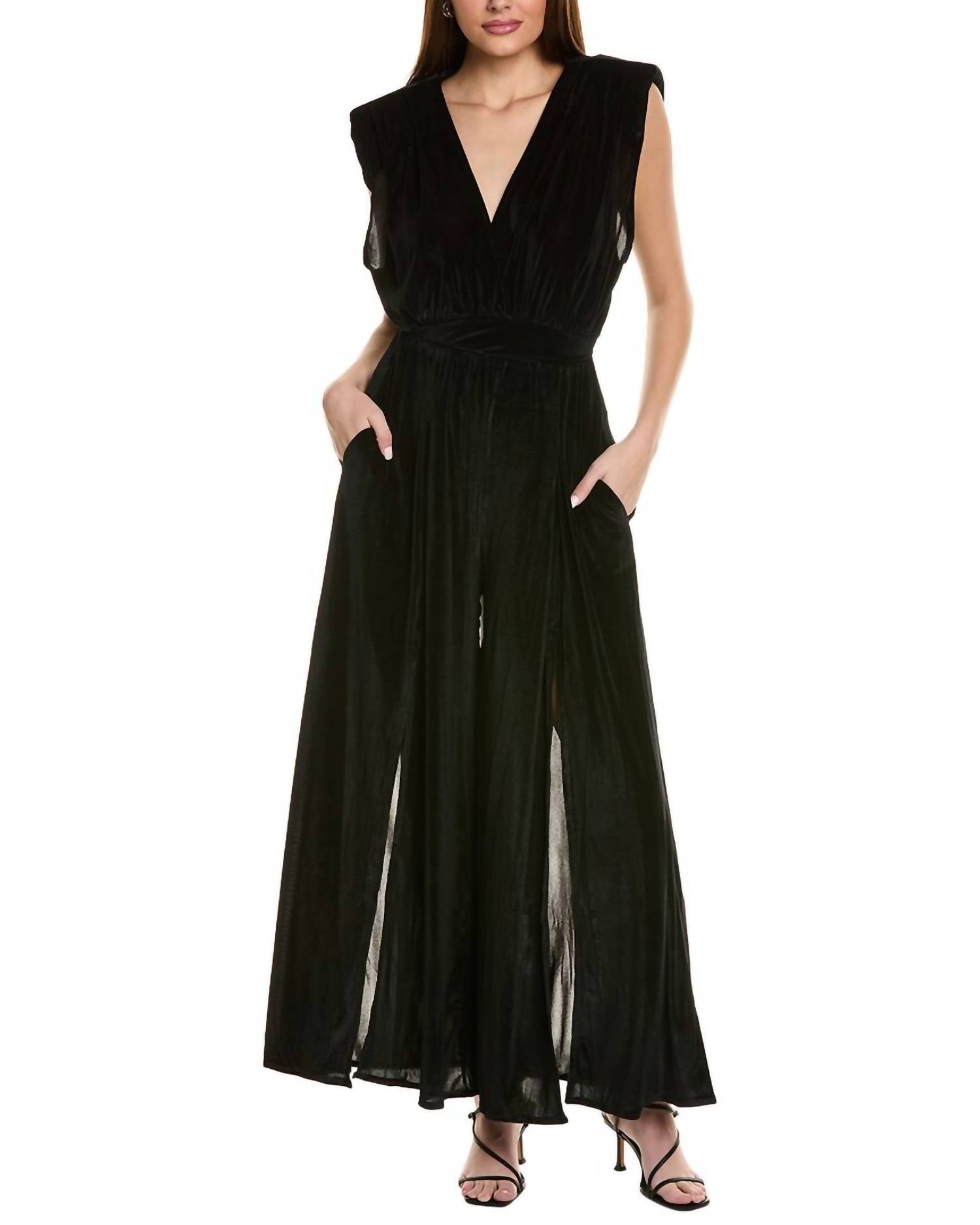 Бархатный комплект топ и брюки в черном цвете BEULAHSTYLE