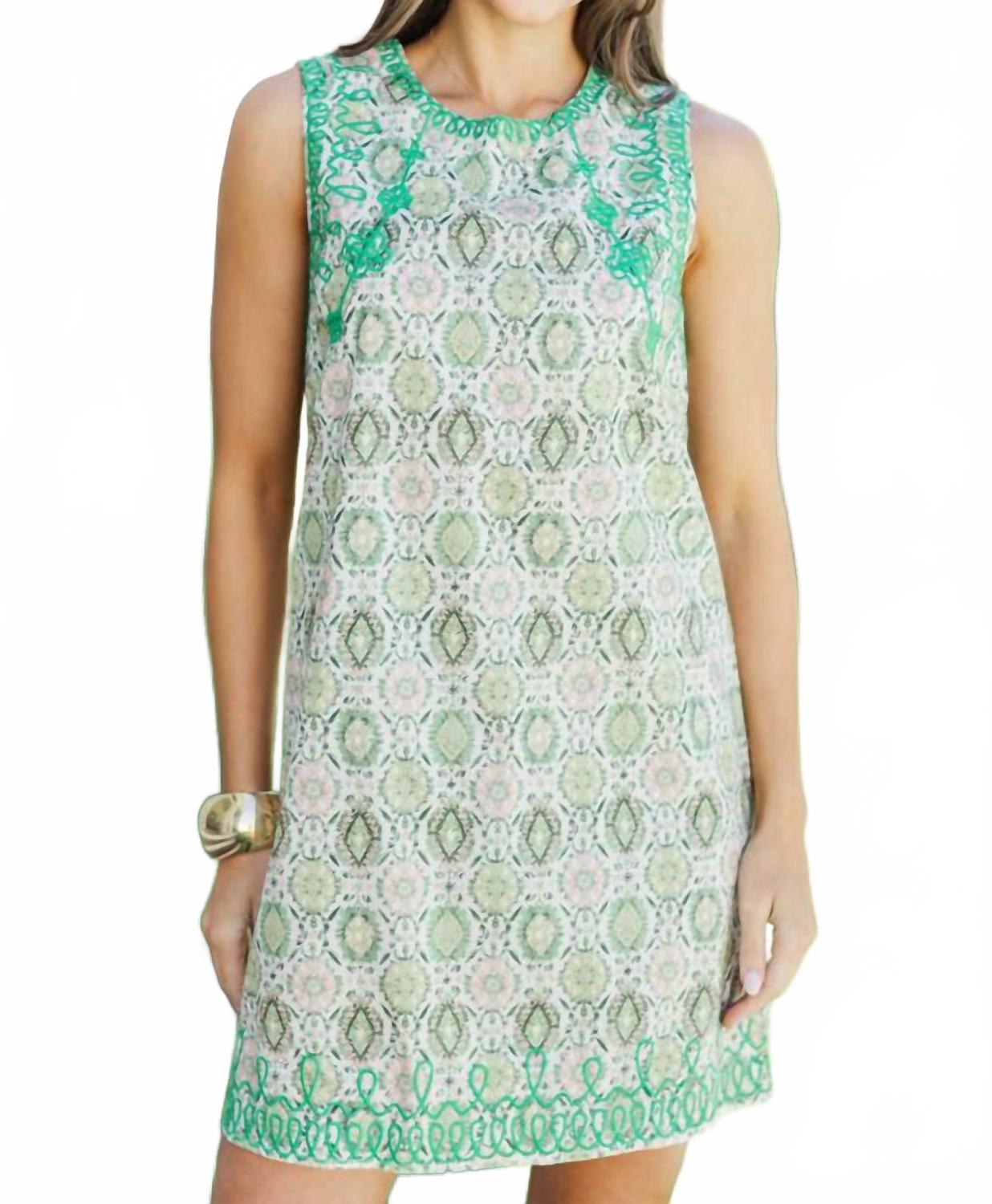Представляем платье-трапецию с вышивкой «Калейдоскоп» от Voy - очаровательное изделие для любого случая. Это мини-платье без рукавов из 100% хлопка украшено завораживающим медальонным принтом «Калейдоскоп» с изысканной вышивкой в виде зеленых петель. Благодаря круглому вырезу и удобной застежке-молнии, оно воплощает летний максимализм своим ярким рисунком и свободным силуэтом. Рекомендации по уходу: ручная стирка в холодной воде, сушка на веревке и химчистка для оптимального ухода.