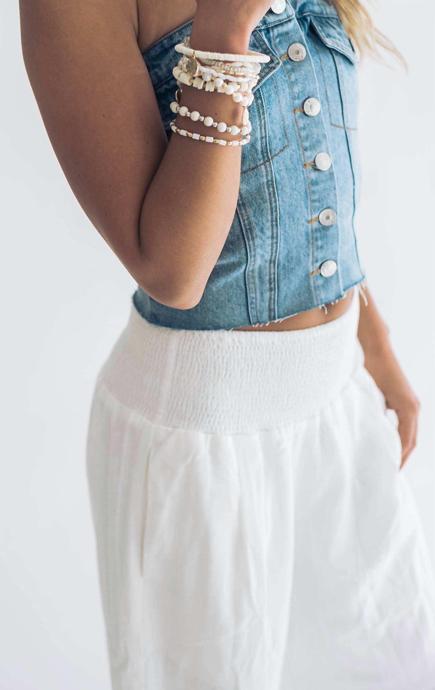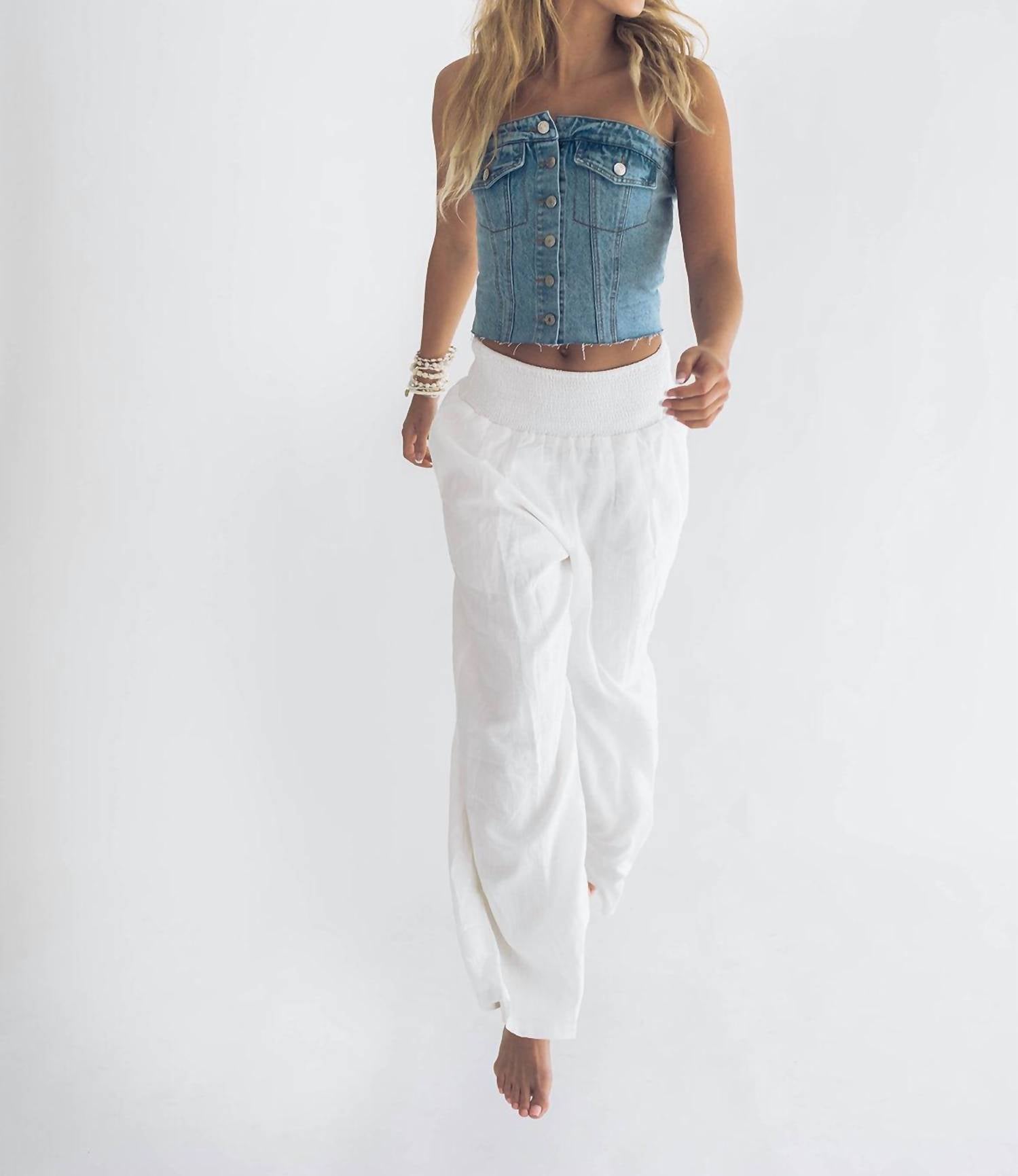 Откройте для себя непревзойденный комфорт и стиль с брюками Ashley Pants от Falcon Park универсального однотонного белого цвета. Эти брюки широкого кроя с высокой посадкой, присборенным поясом создают привлекательный силуэт, а боковые карманы обеспечивают дополнительный комфорт. Состав льняной смеси (70% вискоза, 30% лен, подкладка из 100% вискоза) обеспечивает легкость и комфорт благодаря подкладке. Эти брюки отличаются непринужденной посадкой. Доступны в размерах S (талия 23 дюйма, длина 28 дюймов), M (талия 24 дюйма, длина 29 дюймов) и L (талия 25 дюймов, длина 30 дюймов).