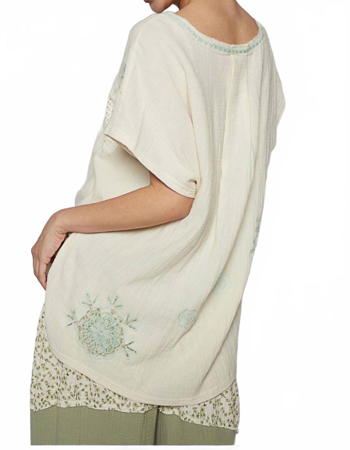 Универсальная блузка, которая подойдет как для работы, так и для ужина! Топ Ezra - это мечтательное сочетание бохо-стиля и непринужденного комфорта. Изготовленная из дышащей, воздушной ткани, эта модель свободного кроя украшена изящной цветочной вышивкой и ажурными деталями, которые добавляют нужную долю игривости. Изящный V-образный вырез и свободный силуэт делают ее идеальным вариантом для ношения поверх вашего любимого бралетта или в сочетании со струящимися юбками и джинсами. Легкая, воздушная и беззаботная - Ezra - ваш выбор для солнечных дней и непринужденной атмосферы.