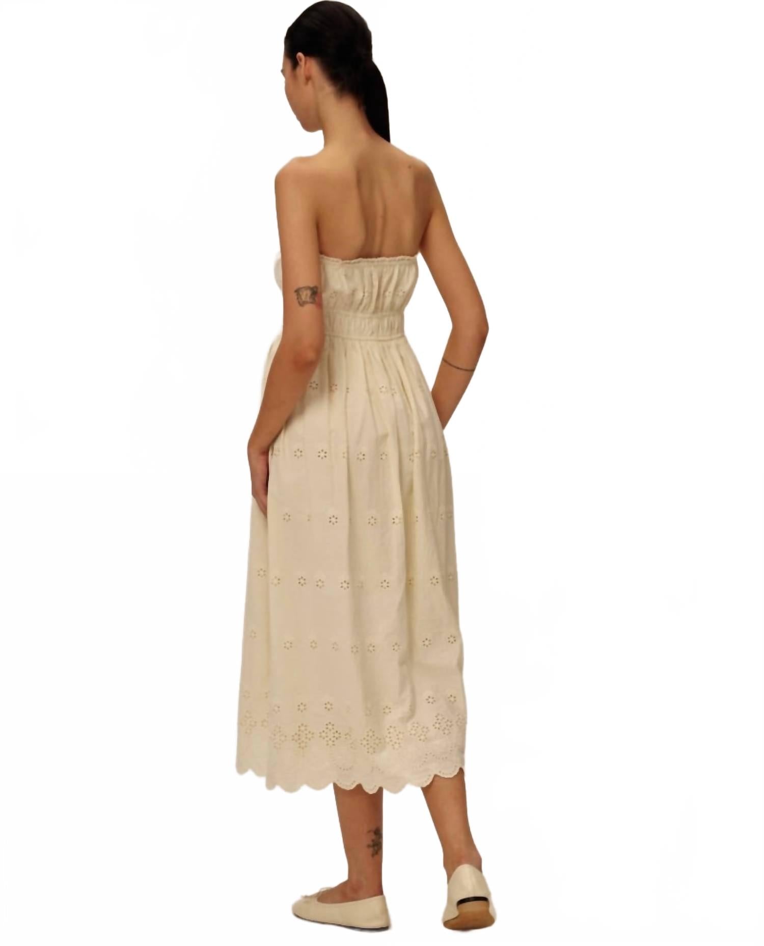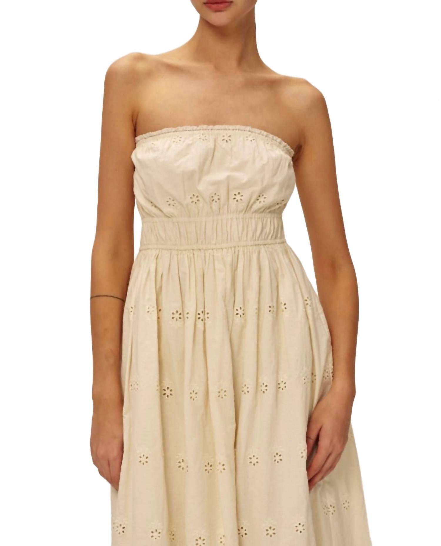 Представляем платье Bea Midi от Elodie - модель без бретелек, которая украсит ваш гардероб своим минималистичным и фактурным шармом. Это бежевое платье с открытыми плечами, выполненное из 100% хлопка, имеет завышенную талию и идеально подходит для летних мероприятий, воплощая непринужденную грацию. Благодаря застежке-липучке его легко носить как на вечернее мероприятие, так и на повседневный завтрак с босоножками или туфлями на каблуке. Оцените его универсальную элегантность, как в повседневном, так и в нарядном образе.