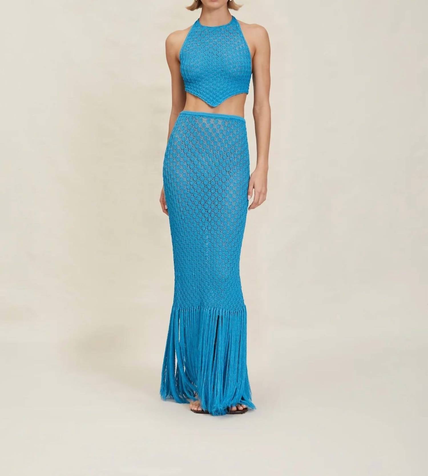 Сочетайте этот укороченный топ с любимыми джинсами с высокой талией или юбкой макси. Представляем топ Lana Top от Devon Windsor - эффектную модель без рукавов в соблазнительном оттенке Azul. Этот трикотажный топ с открытой спиной выполнен из прочного акрилового материала, идеально подходящего для элегантного и удобного кроя. Универсальный, он оснащен регулируемыми завязками на шее и спине для индивидуальной застежки. Рекомендации по уходу: ручная стирка и сушка в разложенном виде. На модели размер S. Рост: 178 см, обхват груди: 32B, обхват талии: 60 см, обхват бедер: 88 см.