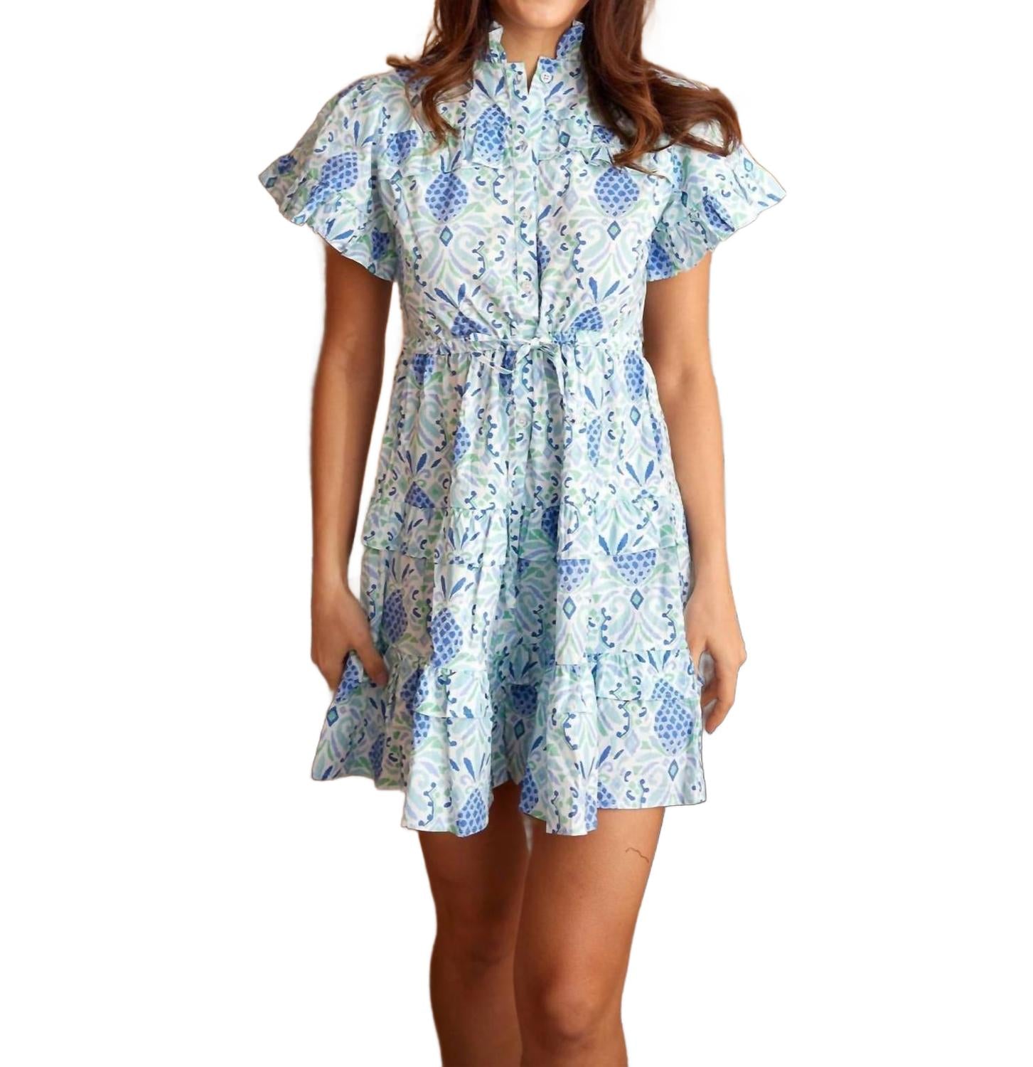 Идеальное мини-платье для теплых месяцев. Дополните свой гардероб платьем-рубашкой с завязкой на талии от SAIL to SABLE - очаровательным цветочным принтом, которое идеально подойдет для любого случая. Это платье с короткими рукавами, эффектным поясом на завязке спереди и застежкой на пуговицы спереди, которая дополняет его универсальный А-образный силуэт. Платье изготовлено из 97% хлопка и 3% спандекса. Платье удобное и стильное, с фестончатой ​​оборкой по краю горловины и подолу. Рекомендации по уходу: ручная стирка и сушка на веревке для достижения наилучшего результата.