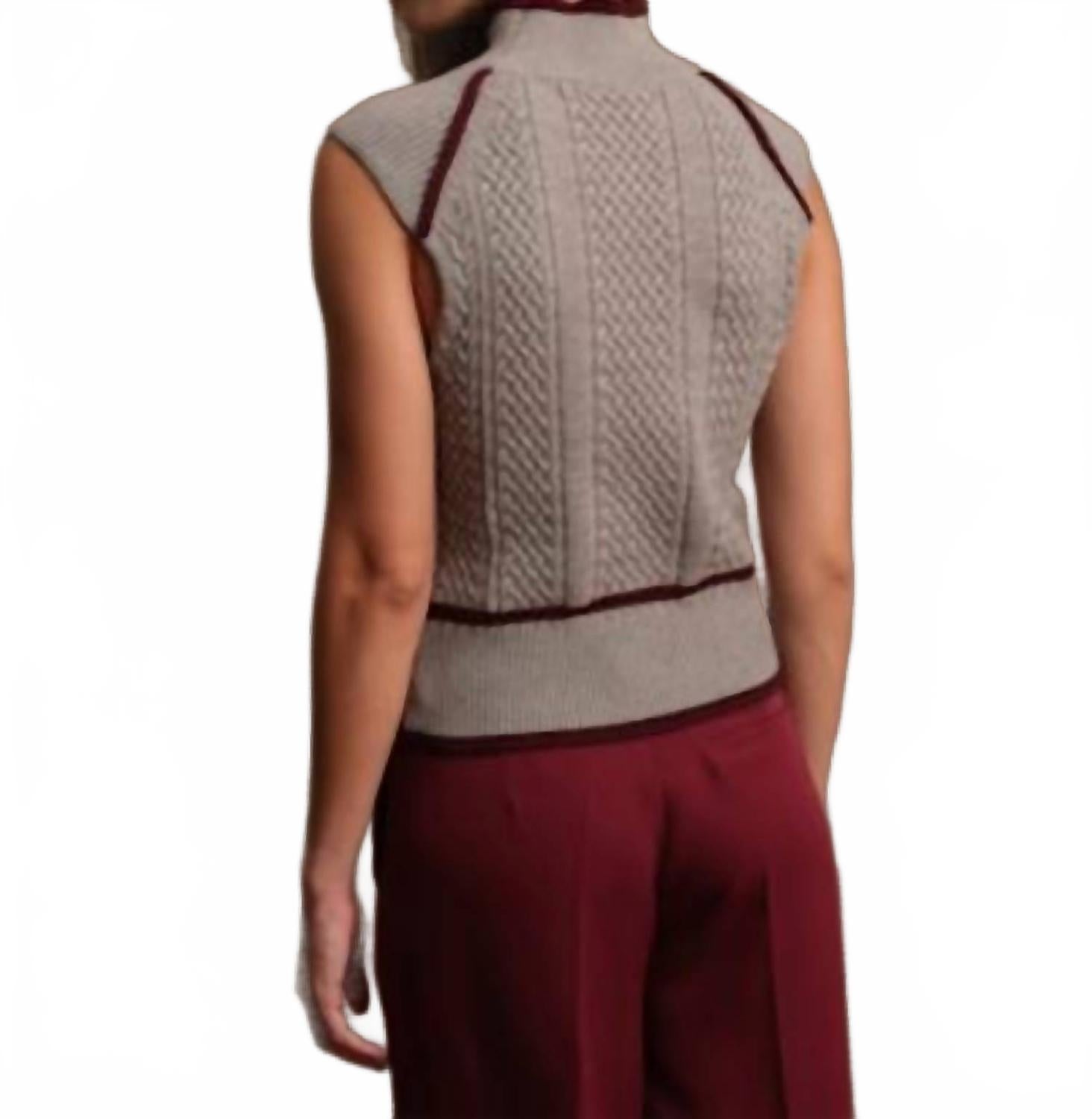 Жилет настолько универсален, что его можно сочетать практически с любым нарядом, и каждый раз он будет выглядеть по-новому. Откройте для себя жилет-водолазку Joe Turtleneck от DELUC - модную вещь, идеально подходящую для минималистичного зимнего гардероба. Этот стильный серый жилет отличается фактурным кроем со сложным узором «косички» и изысканным современным воротником-стойкой. Безрукавка идеально подходит для многослойного ношения или как самостоятельный предмет гардероба, дополненный изысканной контрастной деталью из насыщенного бордового канта. Застежка - на застежку.