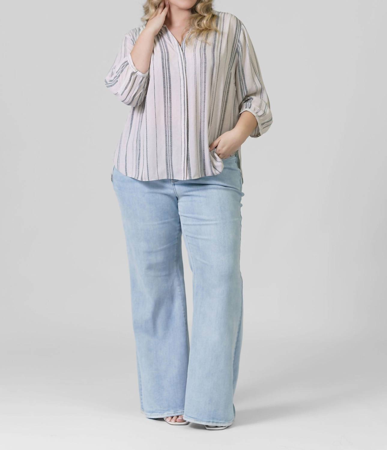 Блузка с защипами - плюс, полоска Sasha NYDJ, Sasha Stripe