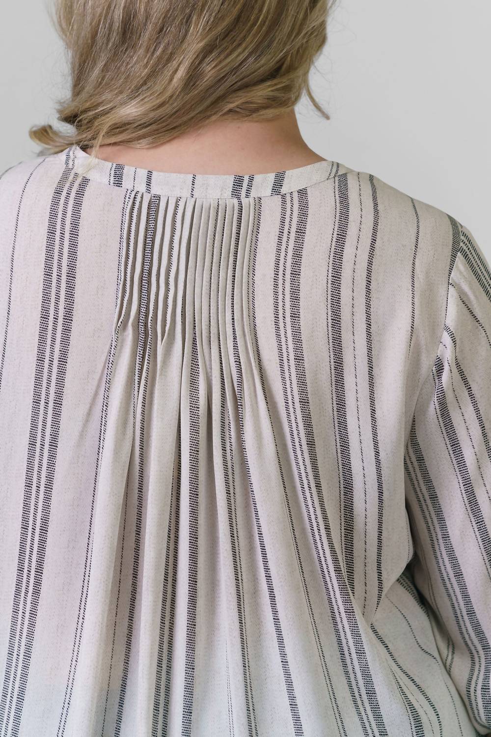 Универсальная блузка, которая подойдет как для работы, так и для ужина! Встречайте блузку Pintuck Blouse от NYDJ в полоску Sasha Stripe - шикарное дополнение к любому гардеробу в стиле бохо. Эта блузка с пышными рукавами три четверти воплощает изысканную, но в то же время легкую драпировку, подчеркнутую складками на кокетке сзади. Изготовленная из экологичного 100% полиэстера, полученного из переработанного пластика, она сочетает в себе стиль и экологичность. С круглым вырезом и закрытой планкой спереди, застежка на шнуровке. Уход прост: машинная стирка и сушка на веревке.