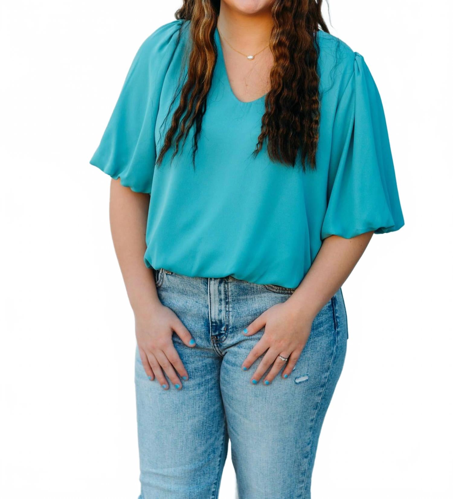 Аква топ с буфами на рукавах Karen Kane, Aqua