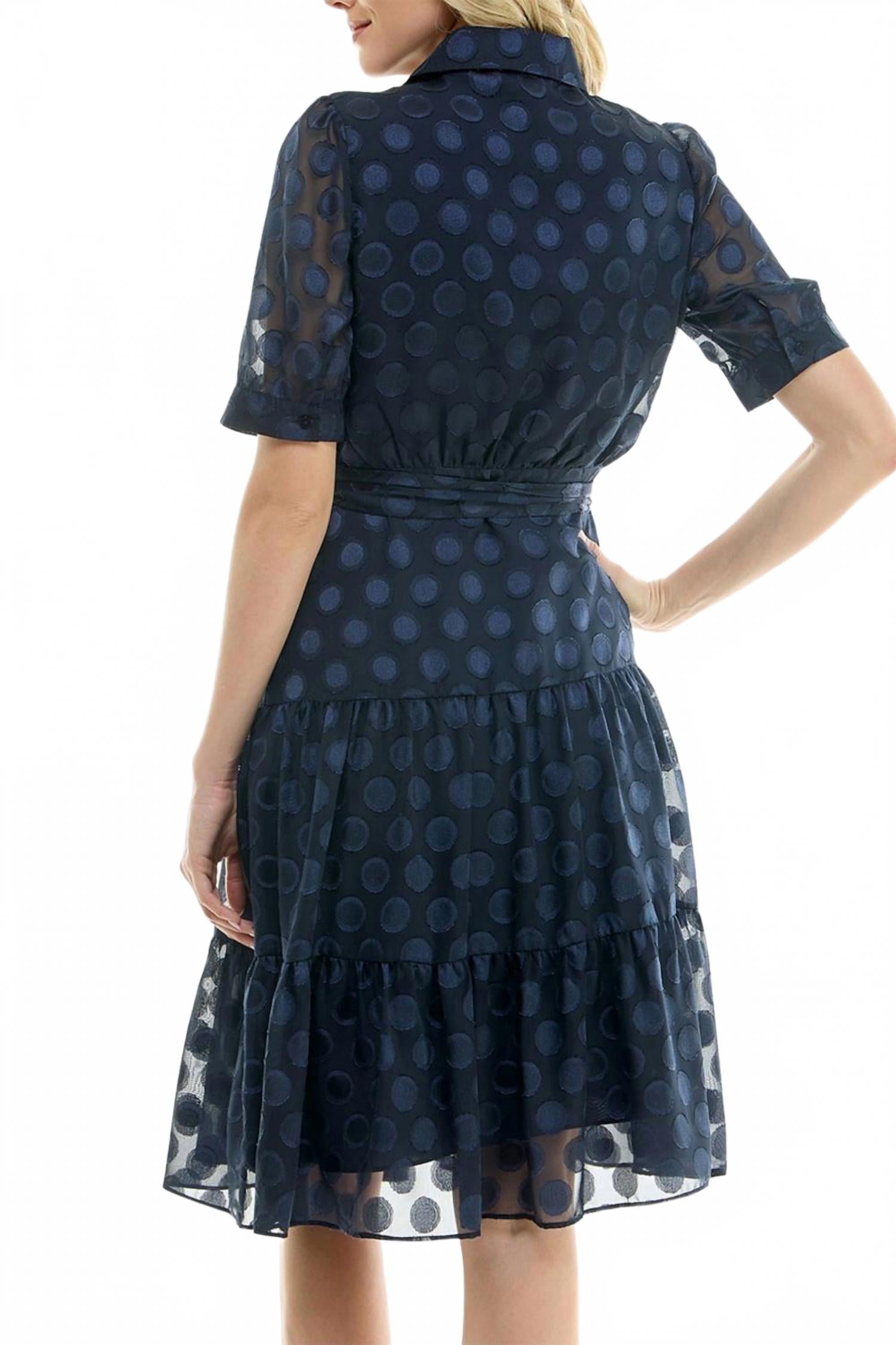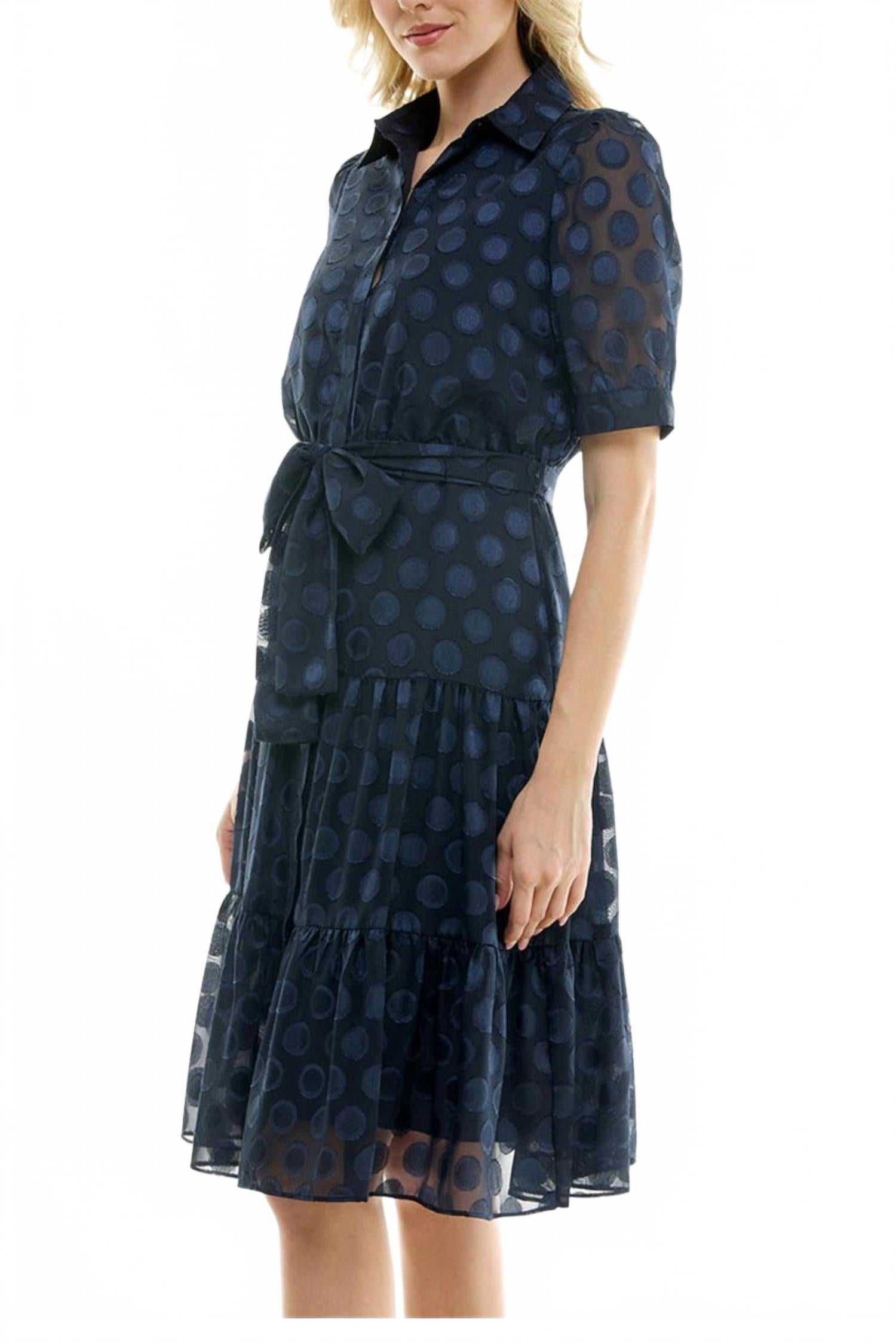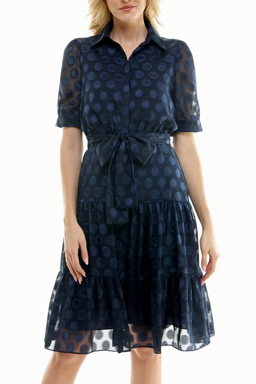 Точечное платье-рубашка с поясом в цвете Navy Nicole Miller