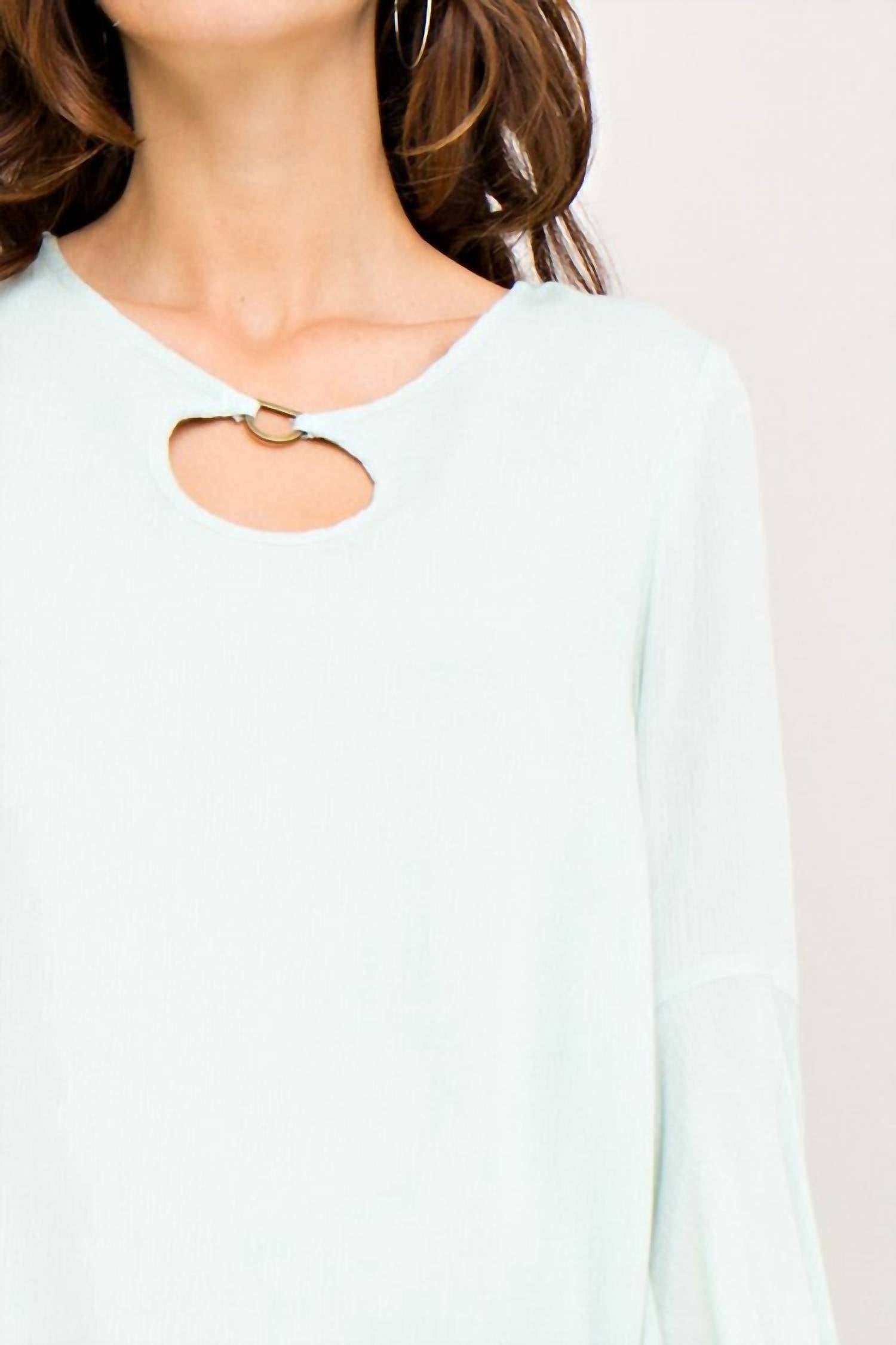 Короткое и воздушное платье для теплых дней. Встречайте мини-платье Crochet Back Mini Dress от Entro - потрясающий предмет гардероба для модниц. Платье выполнено в текстурированном шалфейном оттенке и отличается изысканным рукавом три четверти и элегантным круглым вырезом, что создает свежий образ. Платье отличается воздушным А-силуэтом со стильным вырезом спереди, украшенным латунным кольцом, и ажурной спинкой, связанной крючком. Застежка-липучка обеспечивает непринужденную элегантность, хотя подробные инструкции по уходу отсутствуют, поэтому обращайтесь с ним бережно.
