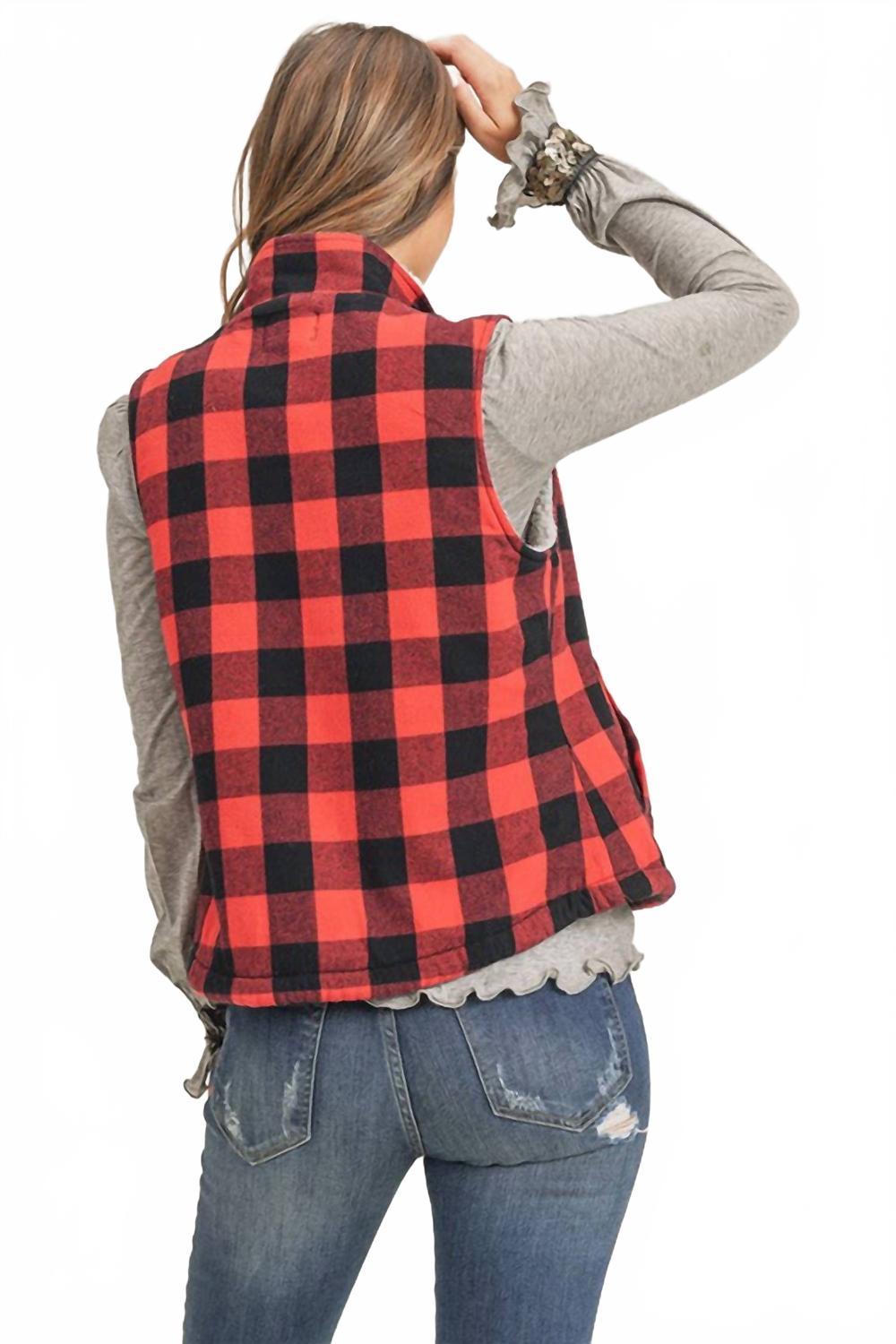 Оставайтесь в тепле и стильно с жилетом Checks Out Sherpa Vest от RISEN, созданным для прохладных дней и создания классических образов. Эта модель без рукавов с мягкой подкладкой из шерпы сохраняет тепло под классическим узором в клетку буйволиного хвоста. Изготовлен из 100% хлопка, имеет застежку на кнопку и практичные передние карманы для рук или необходимых вещей. Для ухода за этим универсальным жилетом отдайте его в химчистку.
