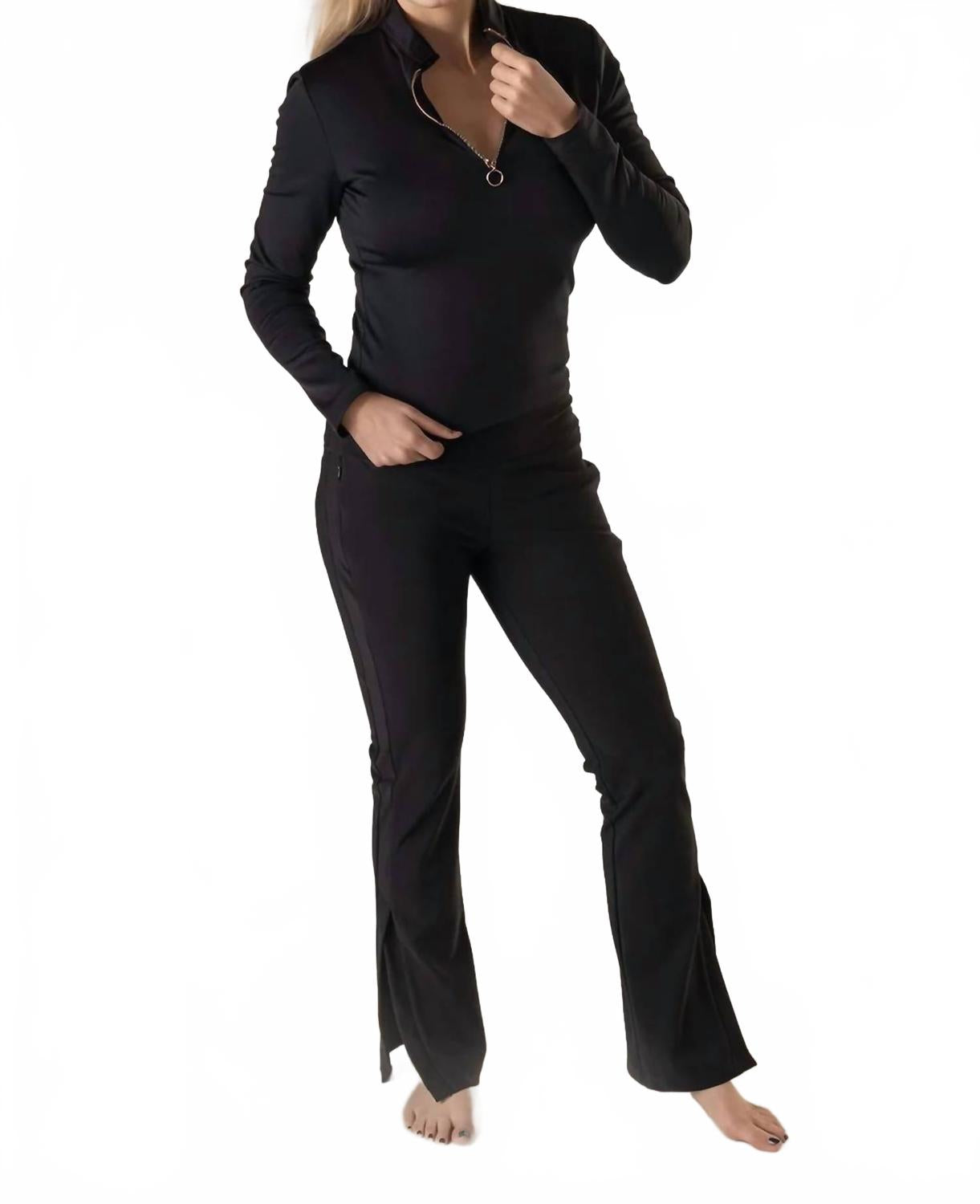 Стильная и функциональная модель с длинными рукавами и воротником-стойкой. Изготовлена из высококачественной смеси 45% полиэстера, 40% хлопка и 15% эластана. Эластичность на 360 градусов обеспечивает свободу движений. Сделано в США из итальянской ткани. Застежка-молния цвета розового золота идеально подходит для многослойной одежды во время осенних занятий спортом. Рекомендации по уходу: машинная стирка в теплой воде и сушка на горизонтальной поверхности, что обеспечивает легкость ухода.
