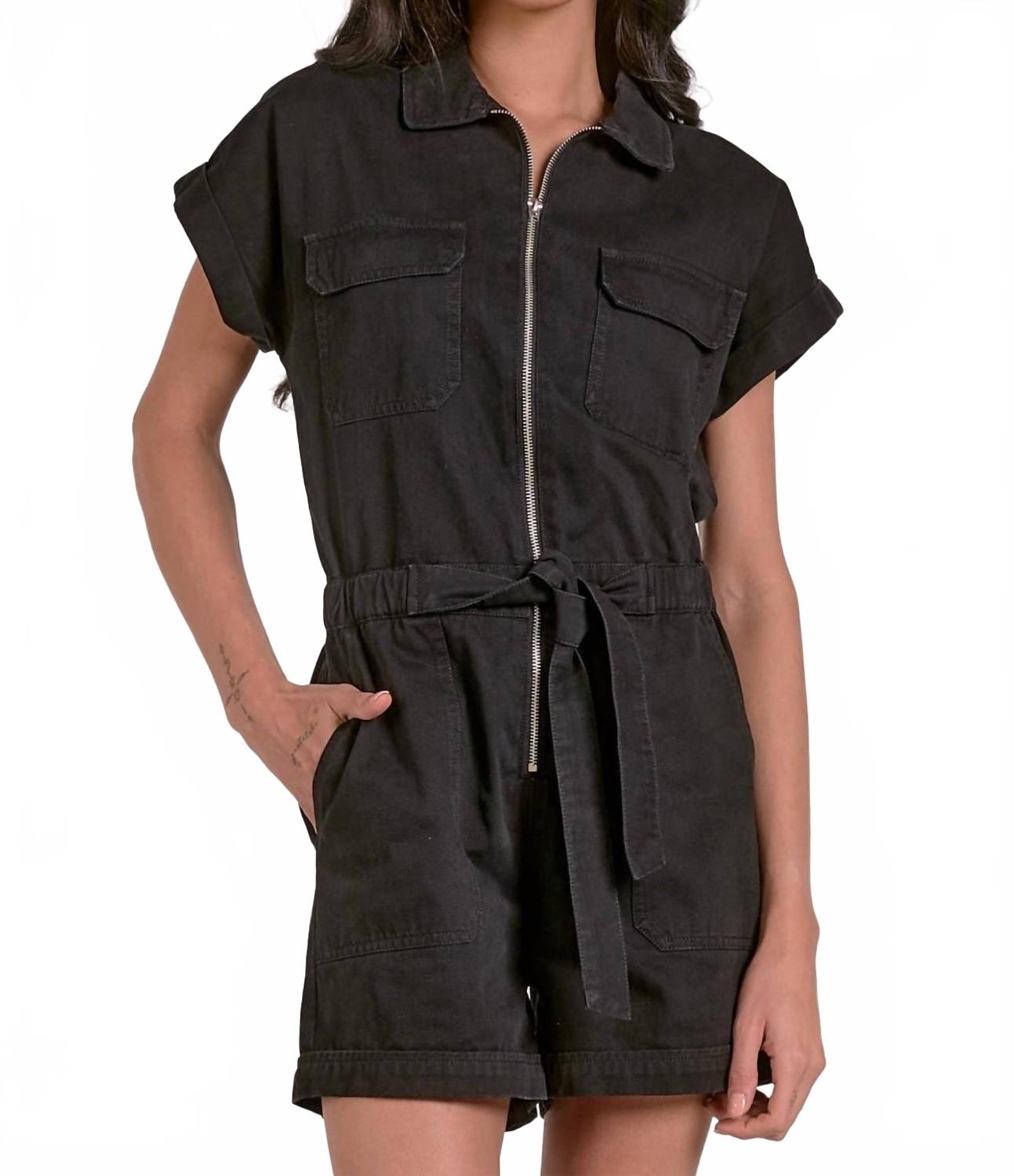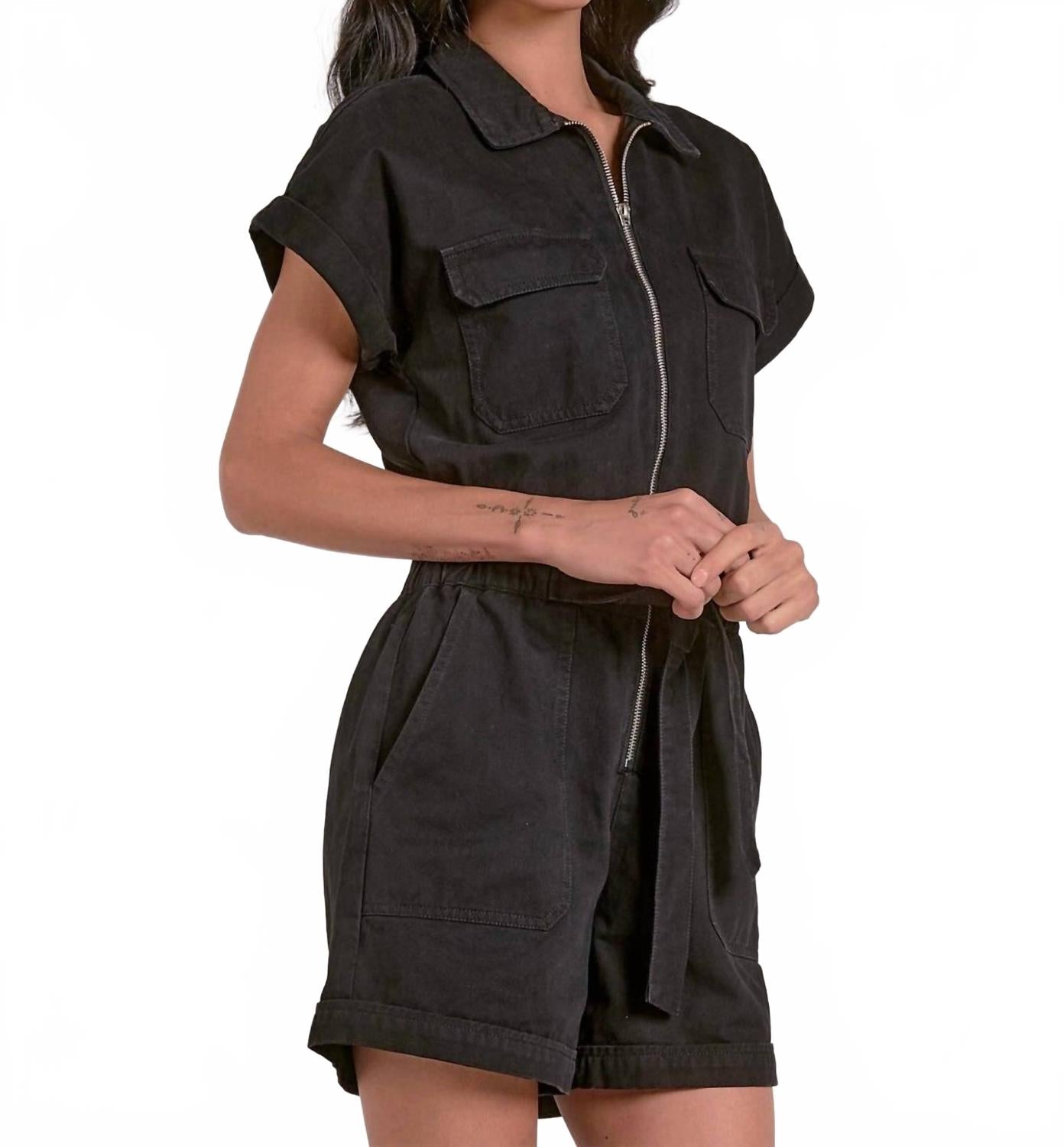 Стильный комбинезон Perry Zip-up Romper от ELAN станет отличным выбором для вашего летнего гардероба. Этот однотонный черный комбинезон из 100% хлопкового денима с уникальной застежкой-молнией и стильным поясом на талии создает стильный уличный образ. Модель с высокой талией и практичными карманами обеспечивает классический крой и прямые штанины для легкости движений. Уход: машинная стирка и сушка в стиральной машине. Идеально подходит для путешествий и отдыха.