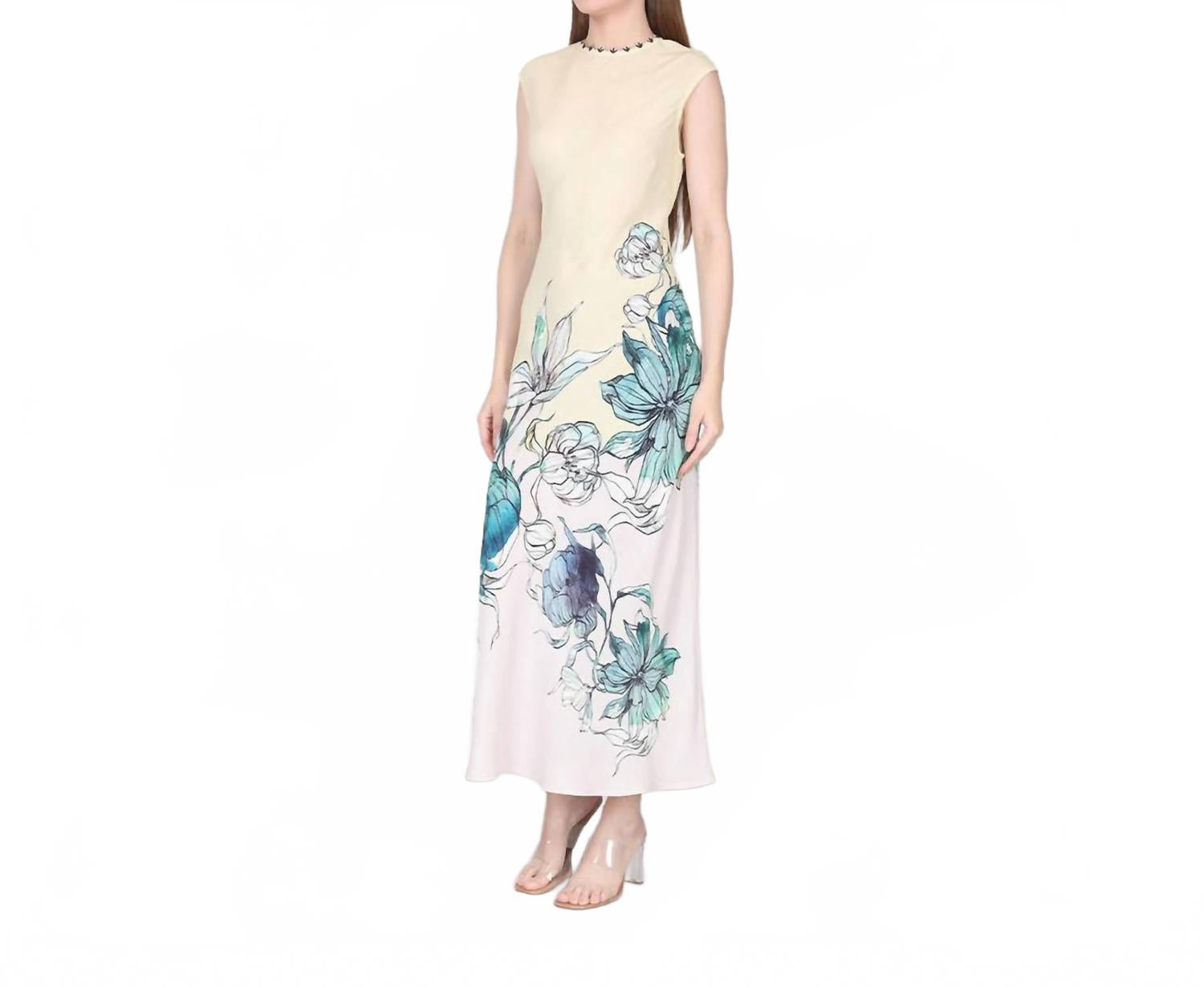 Дополните этот макси-платье любимым эффектным ожерельем и сандалиями для идеального образа. Дополните свой гардероб платьем Charleigh Dress от -bl^nk- - макси-платьем без рукавов цвета слоновой кости, которое станет ярким акцентом. Это элегантное платье из 100% вискозы с круглым вырезом и цветочным узором воплощает весеннюю романтику. Облегающий силуэт облегает фигуру, изящно драпируясь и подчеркивая все изгибы. Это платье идеально подходит для свадеб и празднования Дня матери, а его деликатная ткань требует химчистки для сохранения его непреходящей привлекательности.