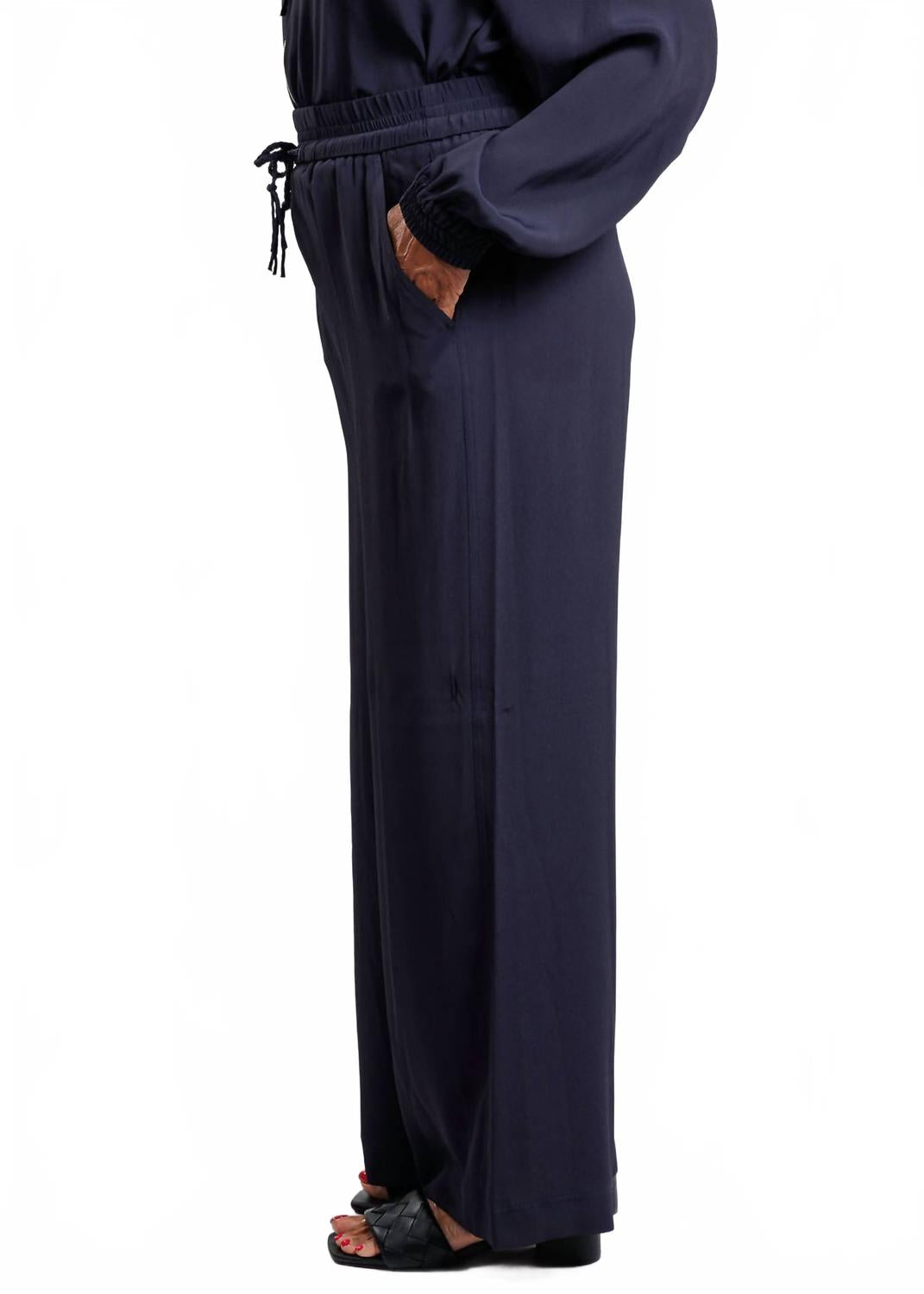 Откройте для себя идеальное сочетание стиля и комфорта в креповых брюках Vivaio от MARELLA, выполненных из роскошной шелковой ткани насыщенного темно-синего цвета. Эти брюки с высокой посадкой имеют прямой крой и удобную эластичную застежку, подходящую для путешествий и повседневной носки. Благодаря косым боковым и прорезным карманам сзади, они практичны, а крепдешиновая ткань обеспечивает изящную струящуюся ткань. Состав: 69% ацетат, 31% шелк. Уход: машинная стирка. На модели размер 6 (рост 175 см, обхват груди 91 см, обхват бедер 88 см, длина внутреннего шва 76 см).