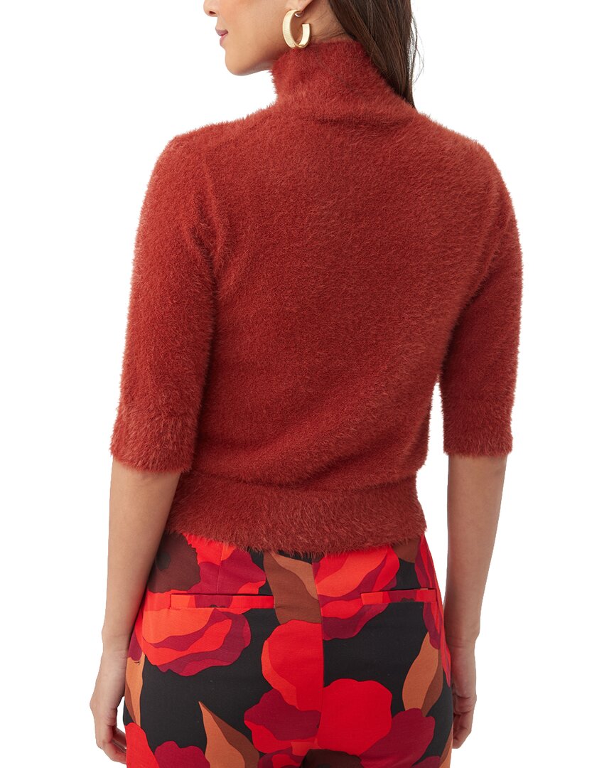 Дополните свой гардероб пушистым свитером Trina Turk Mali цвета красного дерева. Эта современная и яркая модель от бренда Trina Turk вдохновлена ​​многокультурным разнообразием Калифорнии. Вырез под горло и рукава до локтя придают этому свитеру стильный вид, а облегающий крой добавляет изюминку. Этот свитер из 100% полиэстера одновременно уютный и роскошный. Просто наденьте его и сочетайте с любимыми вещами, чтобы создать шикарный образ. Только ручная стирка. Импортный товар. Мерки указаны для размера 2 или S и могут незначительно отличаться в зависимости от размера.