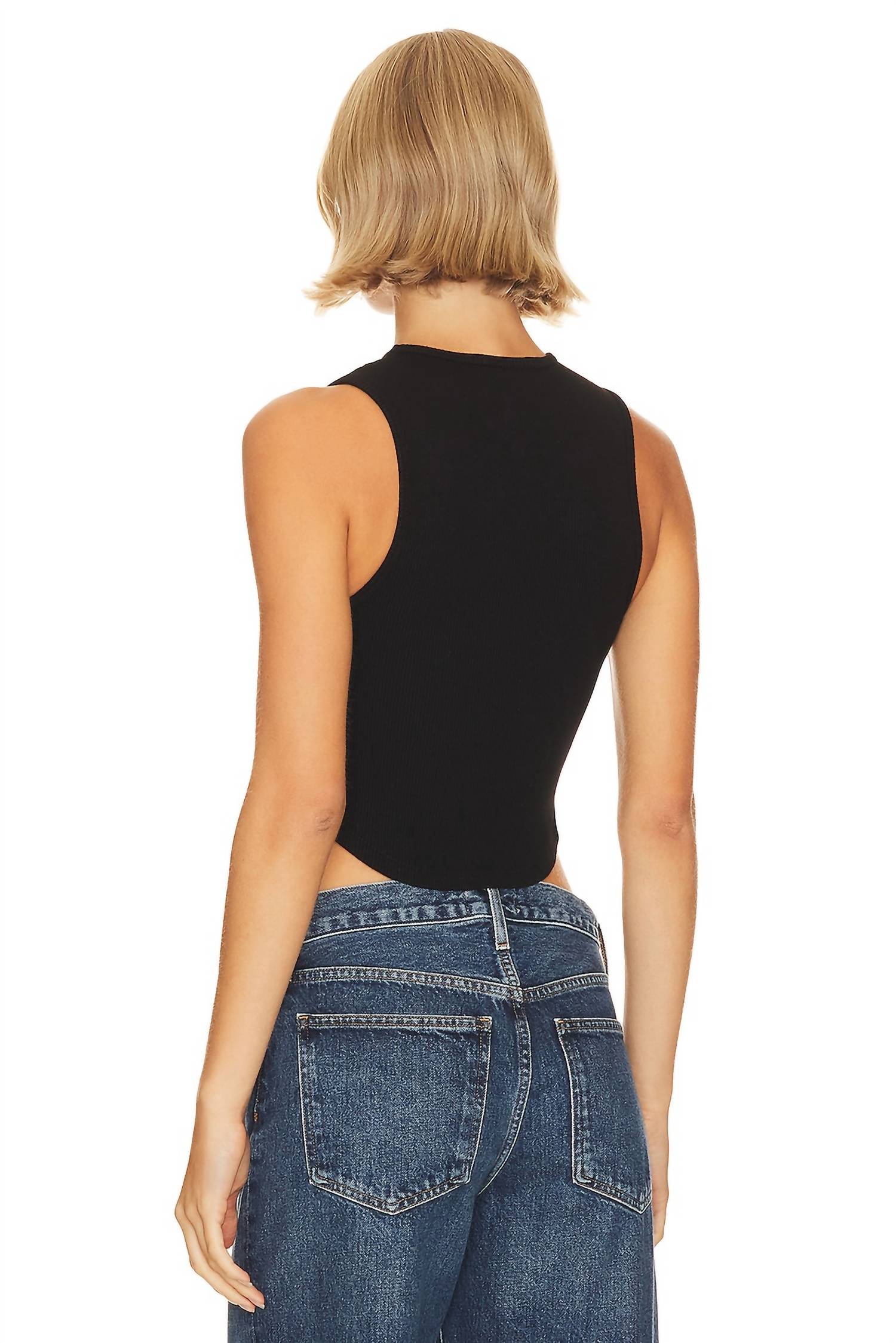 Откройте для себя майку Nova от AGOLDE, незаменимое дополнение к вашему летнему гардеробу в насыщенно-черном цвете. Эта майка без рукавов с высоким круглым вырезом и укороченным подолом, подчеркивающим фигуру, отлично сочетается с джинсами с низкой посадкой. Изготовленная из поддерживающего, дышащего трикотажа в рубчик, она состоит на 49% из органического хлопка, на 49% из лиоцелла и на 2% из спандекса. Эта модель без застежки, с гордостью произведенная в США, подходит для машинной стирки, что обеспечивает легкий уход.