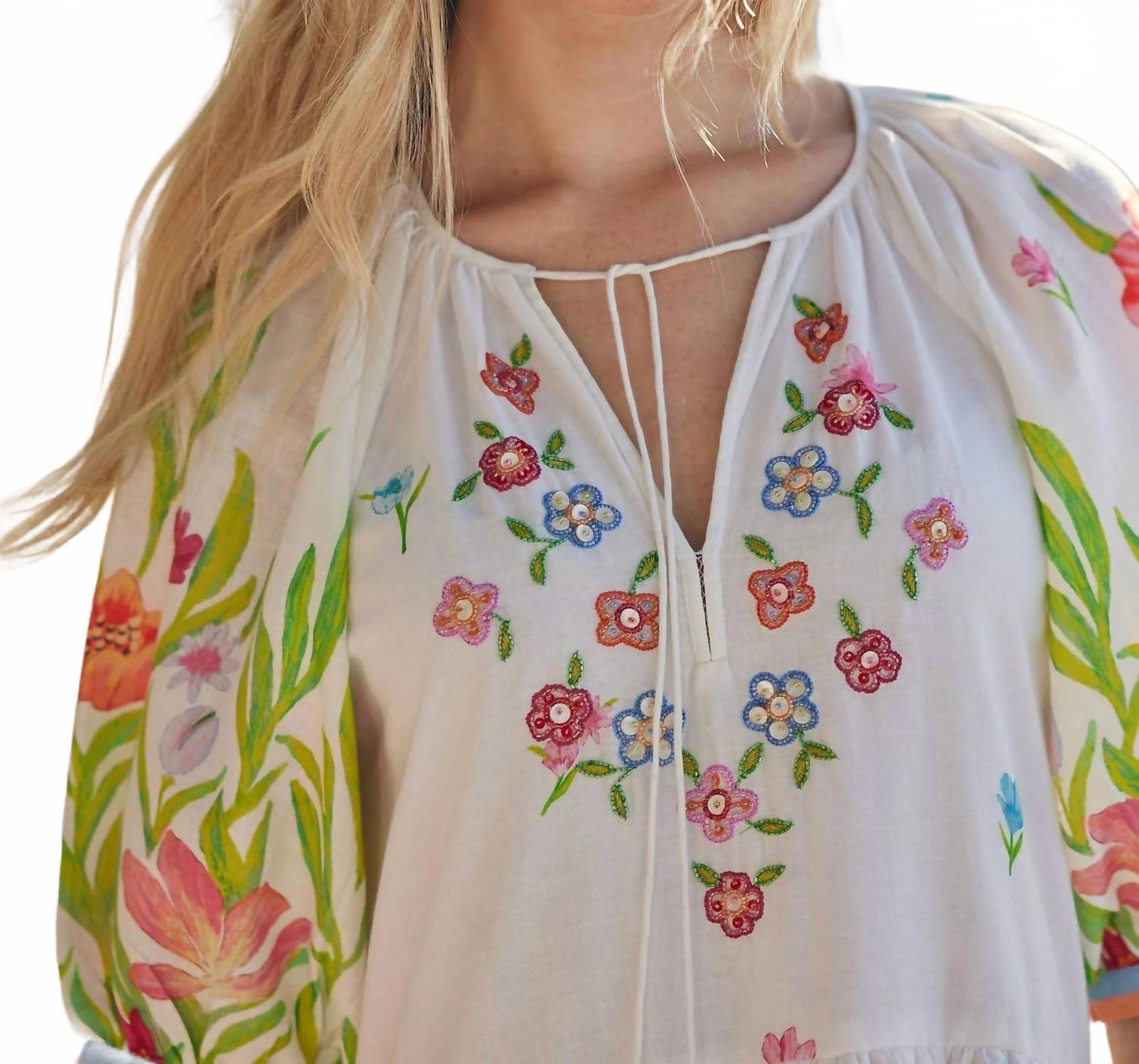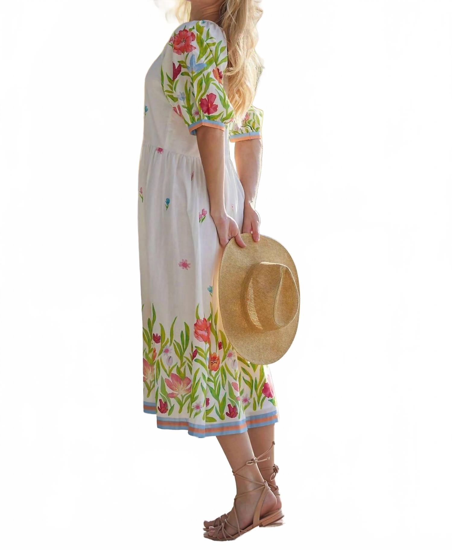 Просто добавьте шлепанцы или мюли, и все готово. Ощутите очарование лета в платье-миди Garden от Bella Tu, выполненном из 100% хлопка, который обеспечивает дышащий комфорт. Это белое платье с цветочным узором в стиле бохо-шик и рукавами, присборенными на три четверти, создает женственный силуэт, идеально подходящий для свадеб или садовых вечеринок. Платье украшено ручной вышивкой ракушками и бисером, а завязка с кисточками добавляет ему привлекательности. Благодаря застежке-липучке и возможности машинной стирки, это платье станет незаменимой вещью в вашем гардеробе.
