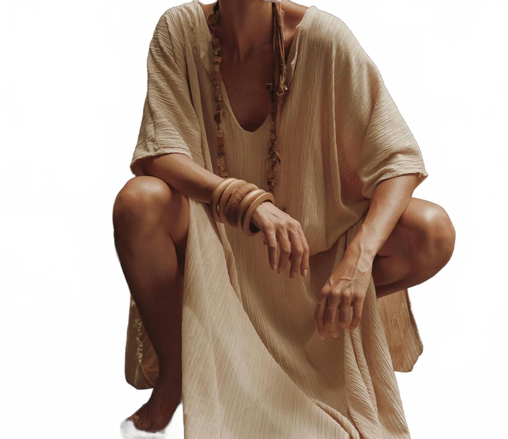 Дополните образ любимыми сандалиями, чтобы создать непринужденный и элегантный образ. Откройте для себя женскую тунику Terrenal от INMACULADA из коллекции Voces de la Tierra, созданную в стиле бохо-шик. Этот бежевый кафтан с короткими рукавами и V-образным вырезом отличается свободным кроем и широким силуэтом, дополненным плетеным поясом для регулировки. Это повседневное платье, изготовленное в Колумбии из 58% вискозы, 40% полиэстера и 2% эластомера, имеет удобную застежку-липучку. Идеально подходит для летнего отдыха. Рекомендуется химчистка или локальная чистка.