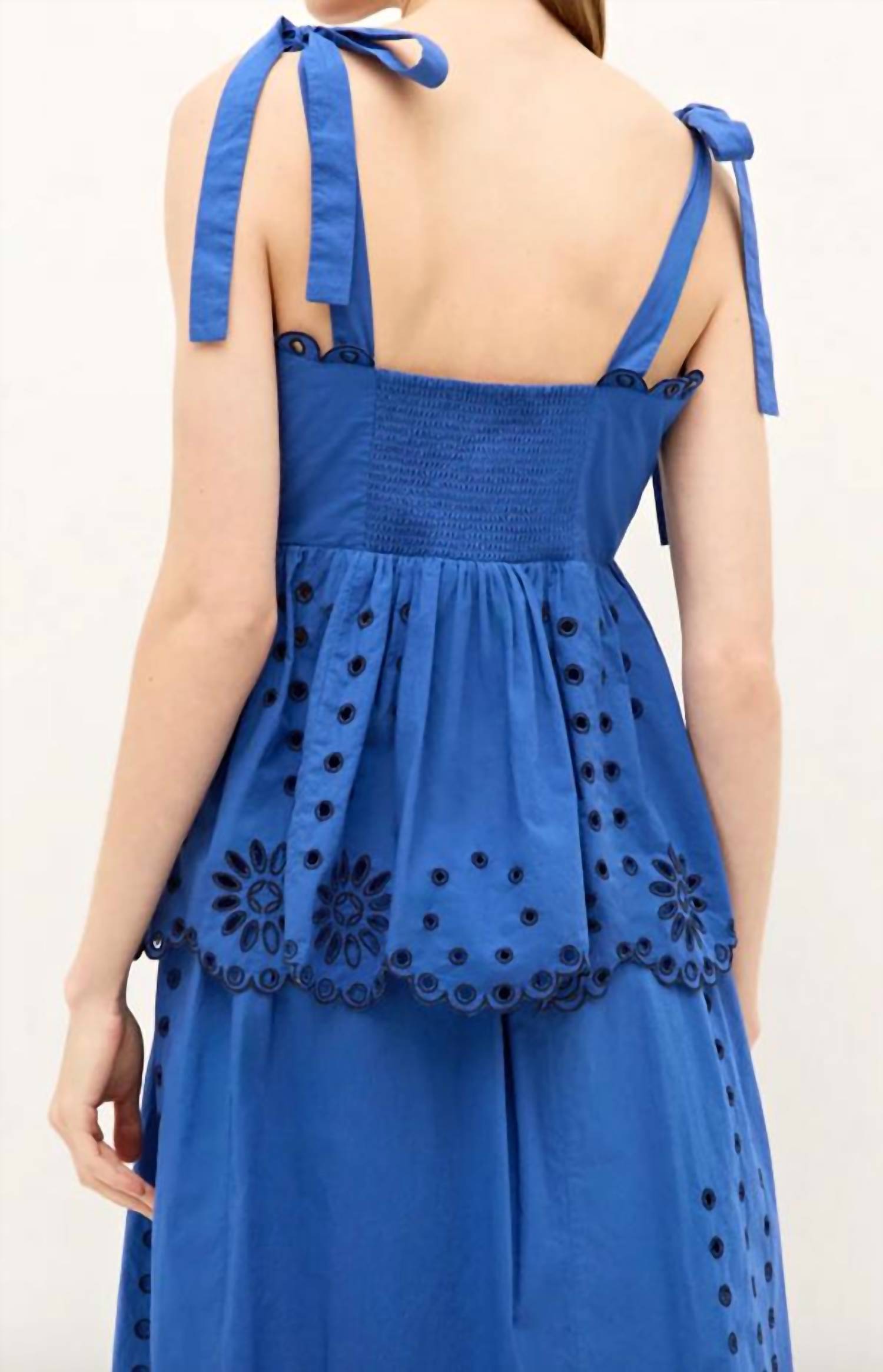 Идеальный укороченный топ для теплых дней. Представляем топ Jolly Top от Marie Oliver - очаровательное дополнение к вашему летнему гардеробу в спокойном оттенке Iris. Этот укороченный топ с тонкими бретельками, регулируемыми завязками на плечах для идеальной посадки и квадратным вырезом. Топ изготовлен из 100% хлопка с изысканной вышивкой и фестончатым подолом, придающим ему женственность. Наслаждайтесь комфортом благодаря застежке-липучке и простому уходу: стирайте в стиральной машине на деликатном режиме в холодной воде и сушите на горизонтальной поверхности.