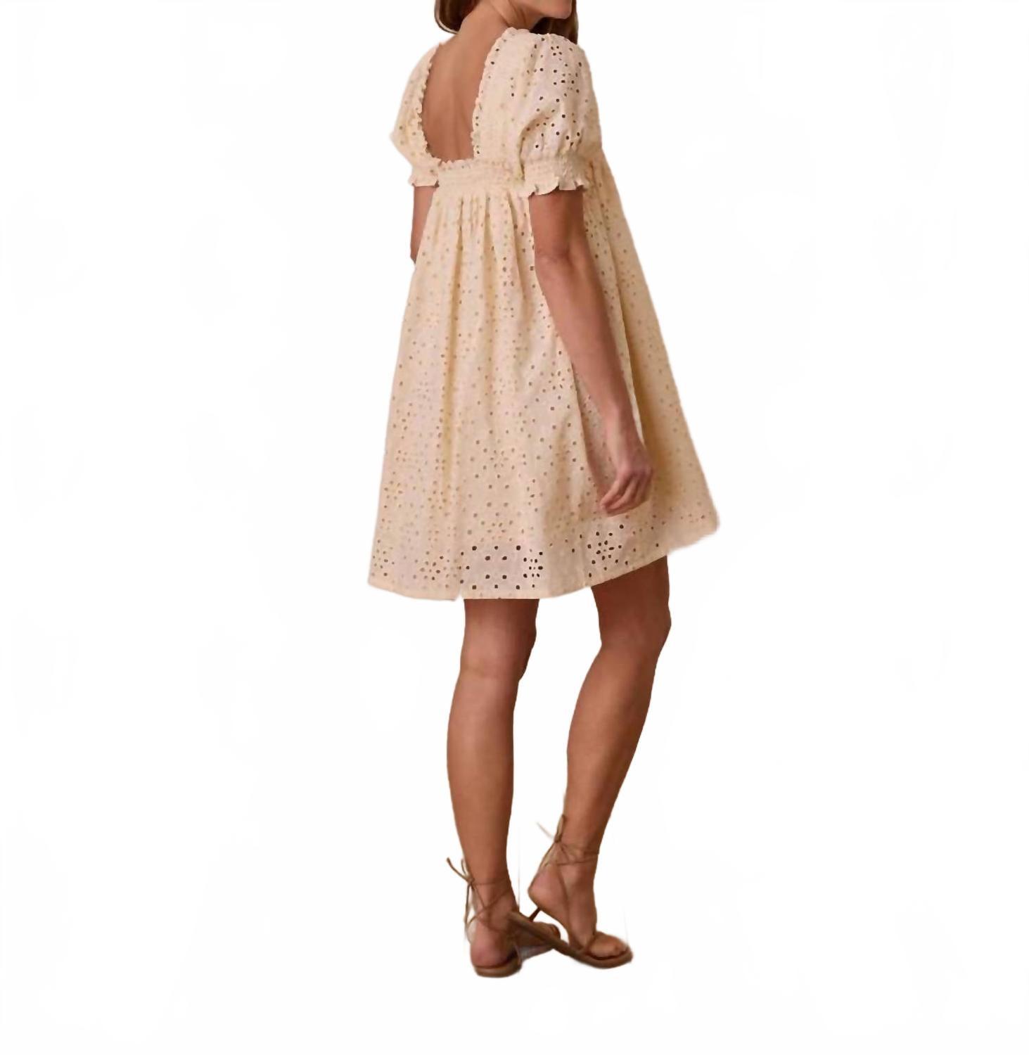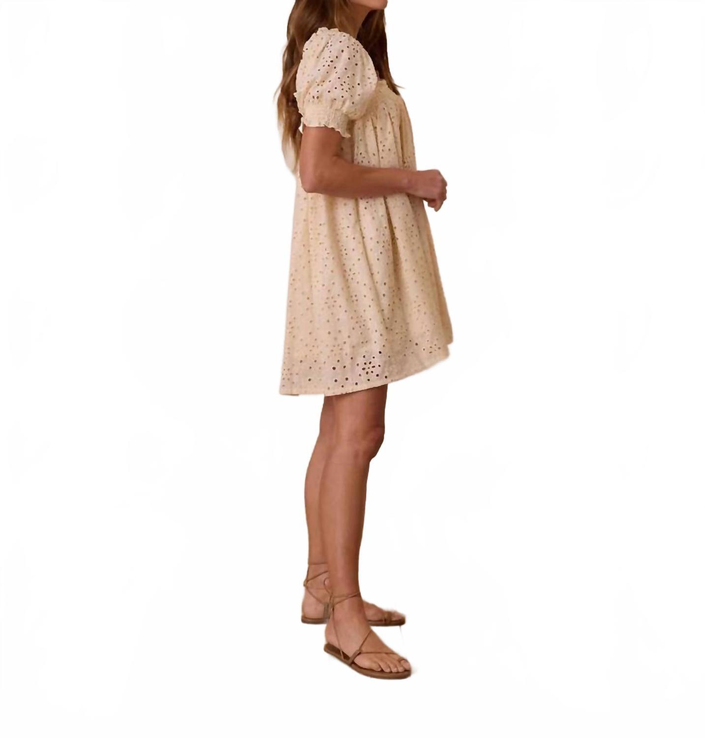 Короткое и воздушное платье для теплых дней. Дополните свой гардероб платьем Rylee + Cru Milan - элегантной вещью естественного оттенка. Это женское платье с короткими рукавами-фонариками и А-силуэтом с люверсами и присборенными деталями на горловине добавит вам женственности. Платье изготовлено из 100% хлопка, обеспечивает дышащий комфорт и идеально подходит для летнего отдыха или пасхальных посиделок. Благодаря удобной застежке-липучке, платье легко носить и ухаживать за ним: достаточно стирать в стиральной машине в холодной воде и сушить на открытом воздухе.