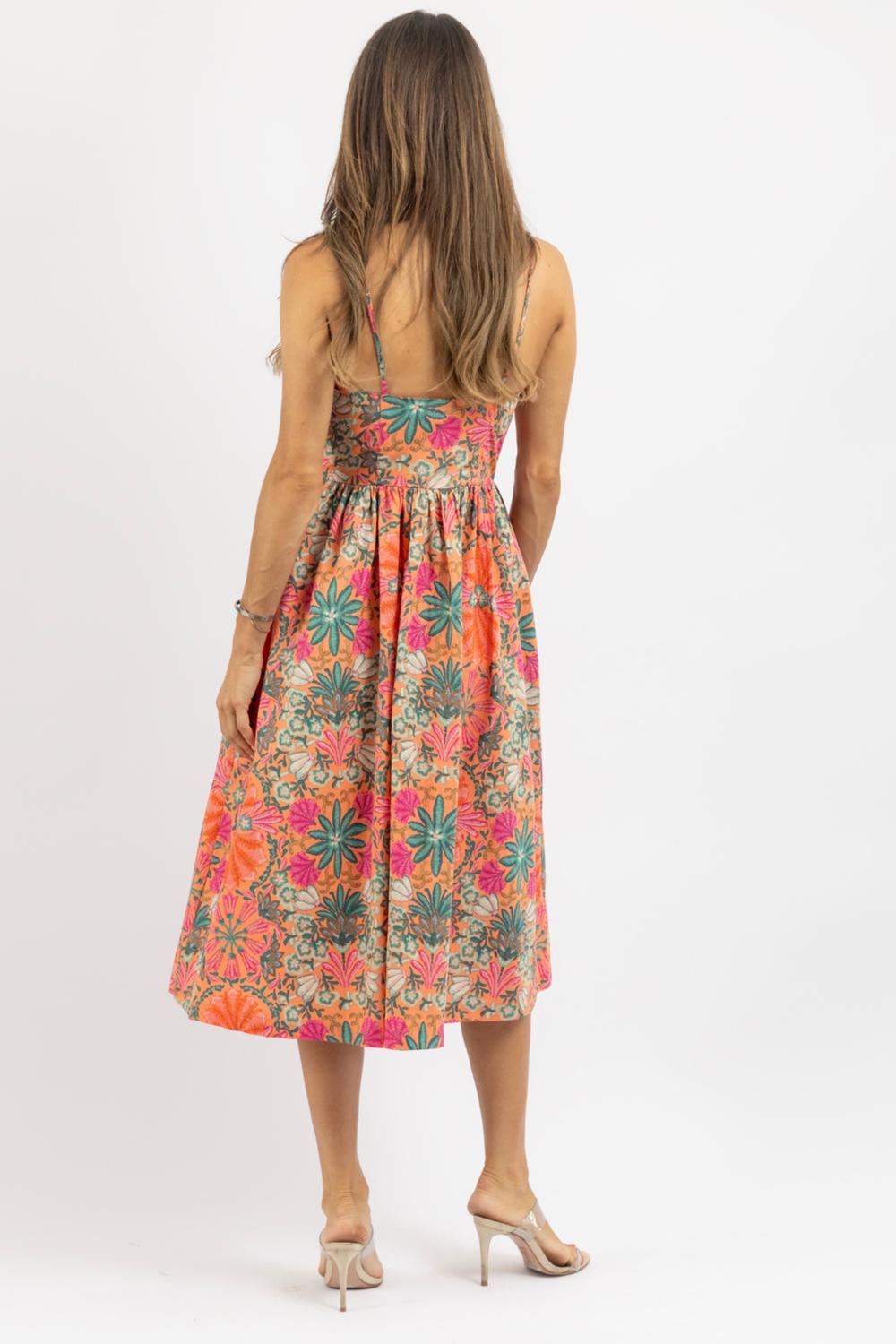 Цветочное миди-платье в оранжевых тонах OLIVACEOUS
