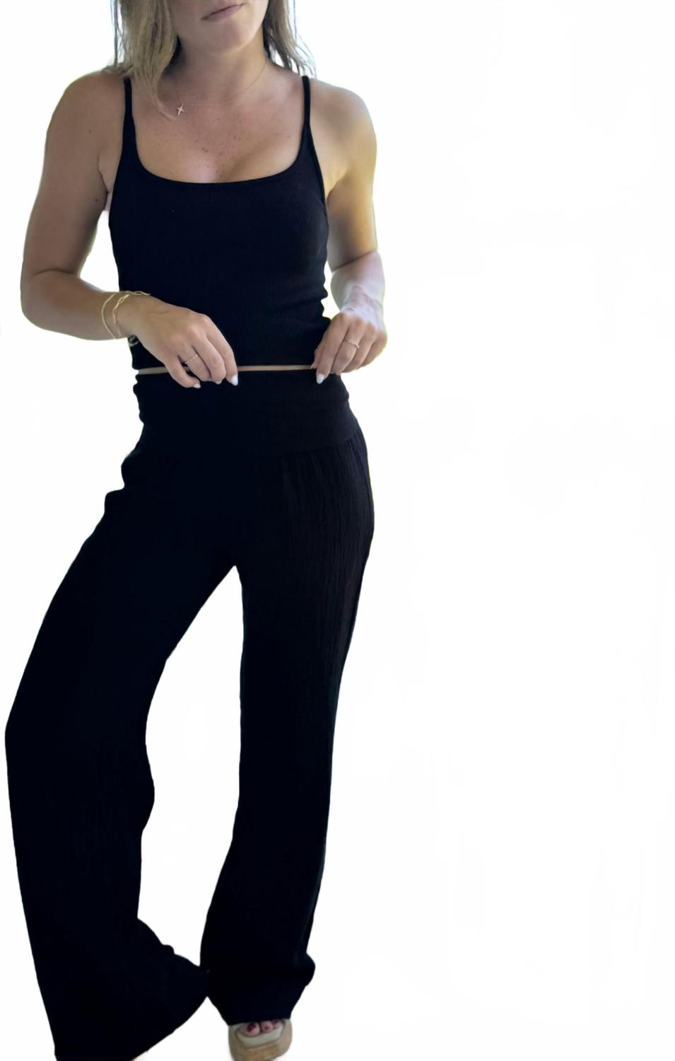 Добавьте изысканности своему летнему образу с пляжными брюками Fold Over Waist от Bobi - незаменимым аксессуаром для шикарного пляжного отдыха или непринужденной прогулки. Эти брюки из 100% хлопка и мягкой марлевой ткани обеспечивают свободный прямой крой с регулируемым отворотом на поясе для максимального комфорта и универсальности. Широкие брюки с удобной застежкой-липучкой и карманами обеспечивают дополнительную практичность. Уход: машинная стирка и сушка в стиральной машине. Идеально сочетается с топом Spaghetti Strap Cami для создания элегантного образа.
