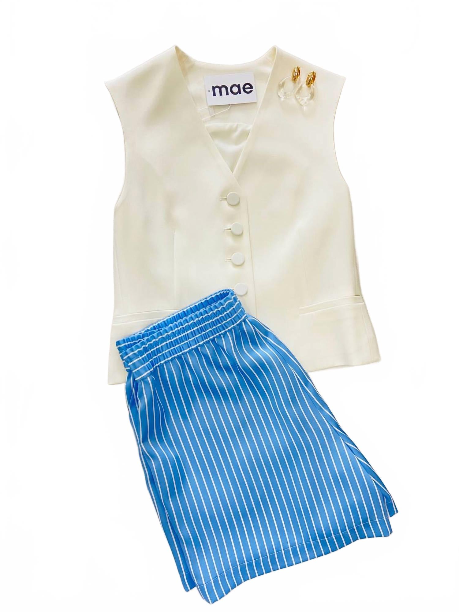 Представляем шорты Kiana Striped Short от DREW в освежающем небесном оттенке, идеально подходящие для стильного летнего ансамбля. Эти шорты с высокой талией и свободным кроем изготовлены из мягкого хлопка и обеспечивают непревзойденный комфорт. Благодаря модному полосатому узору они подойдут для самых разных случаев, например, для празднования дня рождения. Уход прост: машинная стирка и сушка на веревке - эти шорты станут прекрасным дополнением к вашему спортивному гардеробу.