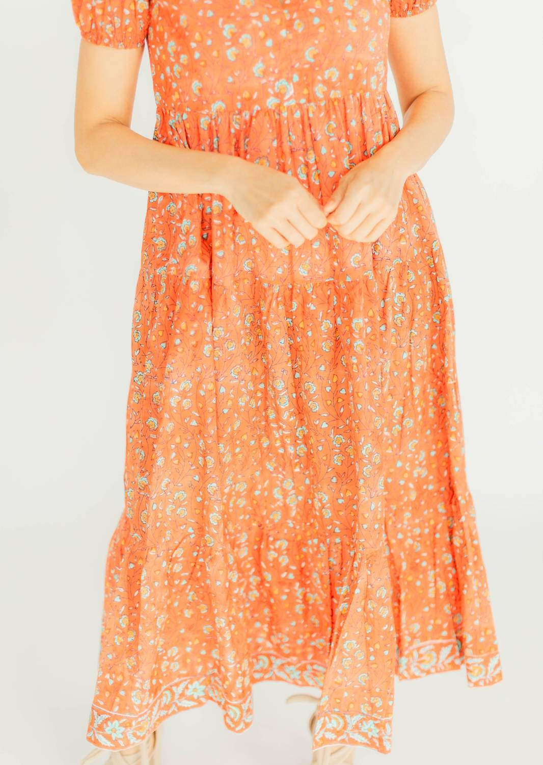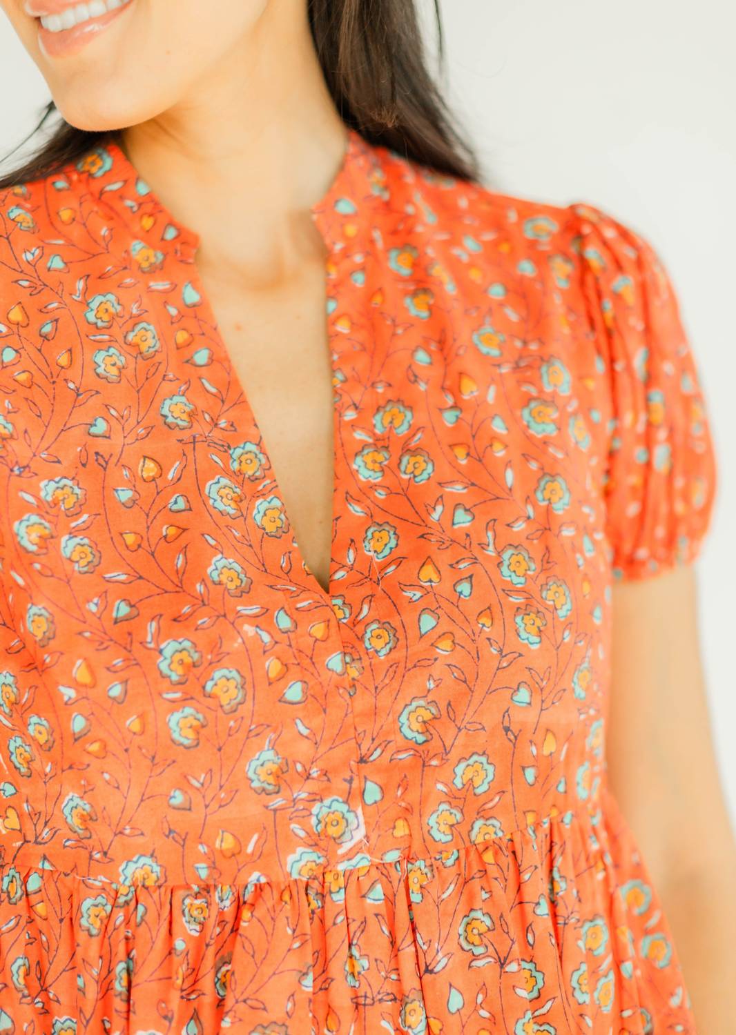 Просто добавьте шлепанцы или мюли, и все готово. Представляем платье Clover Puff Sleeves от VICTORIA DUNN с ярким цветочным узором Sunstruck, идеально подходящее для любого весеннего случая. Это платье миди А-силуэта с V-образным вырезом и короткими рукавами-буфами с контрастной отделкой придает образу изысканный женственный вид. Изготовленное вручную в Джайпуре, Индия, из 100% органического хлопкового поплина, оно обеспечивает комфорт и изысканность. Платье имеет удобную застежку-липучку. Для сохранения идеального состояния рекомендуется сдавать в химчистку.