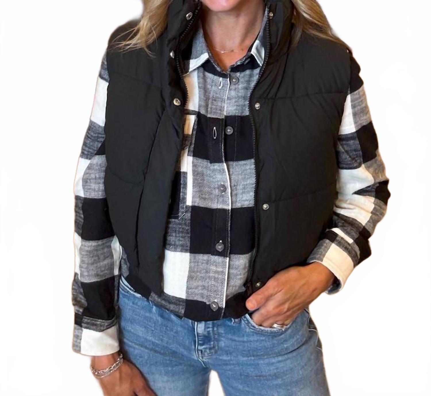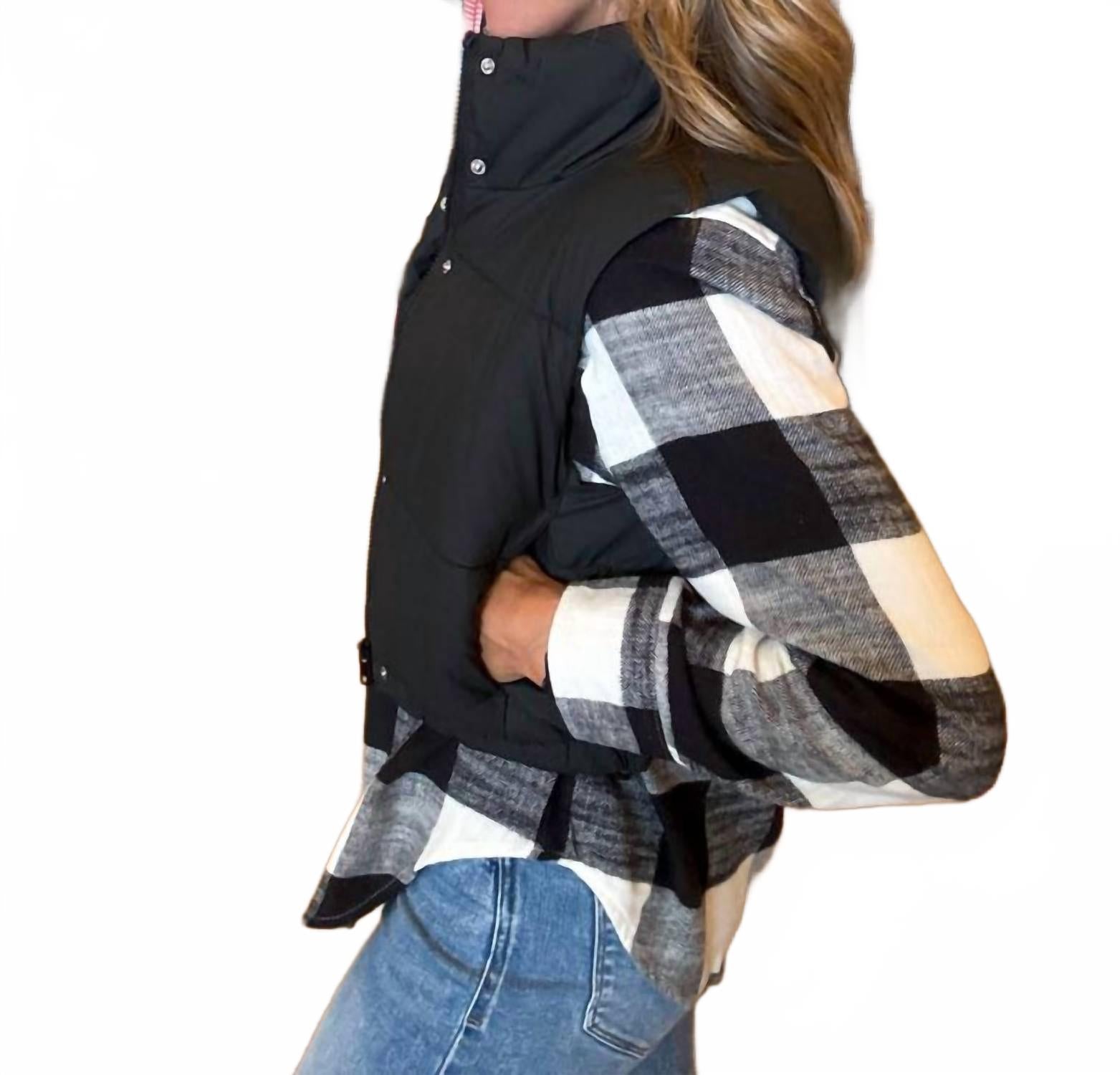 Тот самый дополнительный элемент многослойности, о котором вы даже не подозревали! Представляем жилет Haven Puffer Vest от LOVE TREE в элегантном черном цвете - стильный монохром, незаменимый элемент зимнего гардероба. Этот жилет без рукавов выполнен из мягкого стеганого материала с высоким воротником-стойкой, обеспечивающим тепло и комфорт. Он дополнен практичными боковыми карманами и регулируемым подолом со шнурками, а также удобной застежкой на кнопку. Идеально сочетается с любимыми свитерами или фланелевыми рубашками, создавая шикарный образ для отпуска.