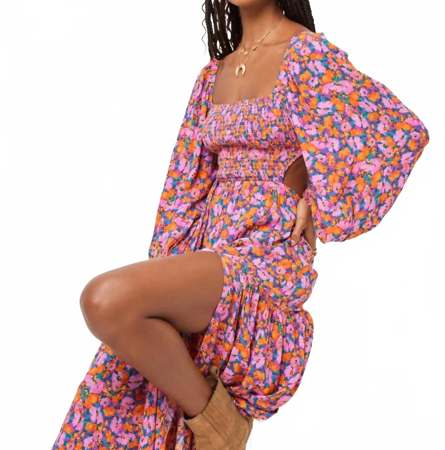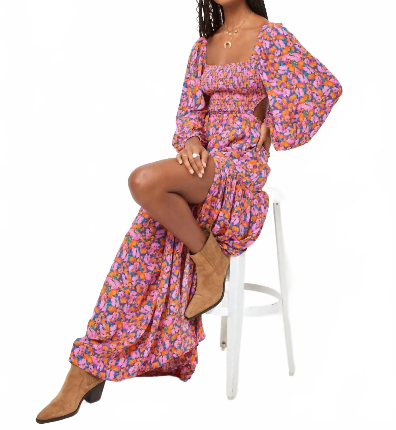 Платье макси Heidi от L*SPACE - это идеальное сочетание элегантности и комфорта благодаря длинным рукавам-буфам и выгодно подчеркнутой талии с присборкой. Это платье макси из 100% вискозы украшено эффектным цветочным узором Positively Poppies, дополненным стильным вырезом на спине и квадратным вырезом. Разрез на штанине дополняет струящийся силуэт. Идеально подходит для любого летнего мероприятия, будь то повседневная прогулка или праздничная вечеринка. Уход за этим деликатным изделием: стирайте вручную в холодной воде и сушите на горизонтальной поверхности.