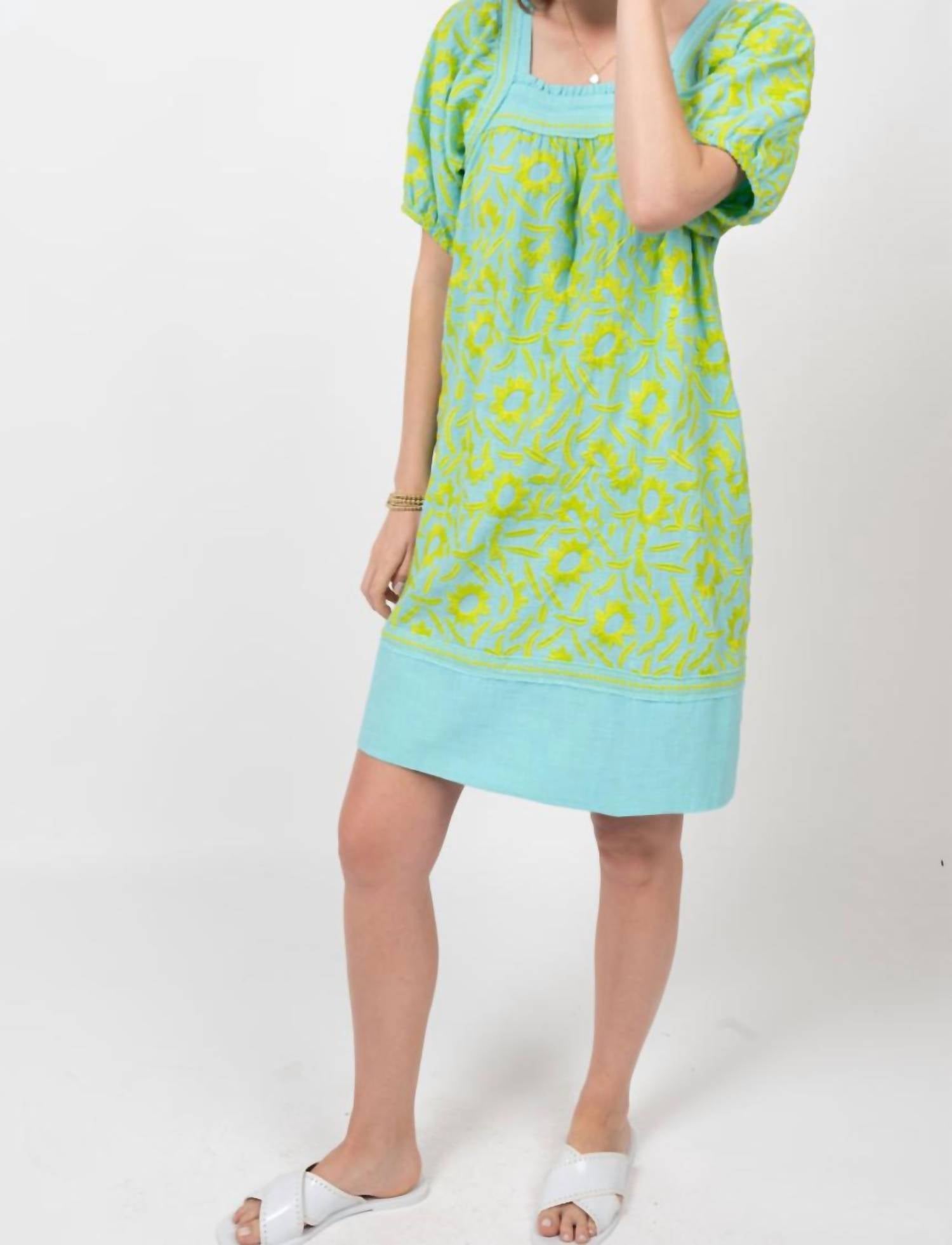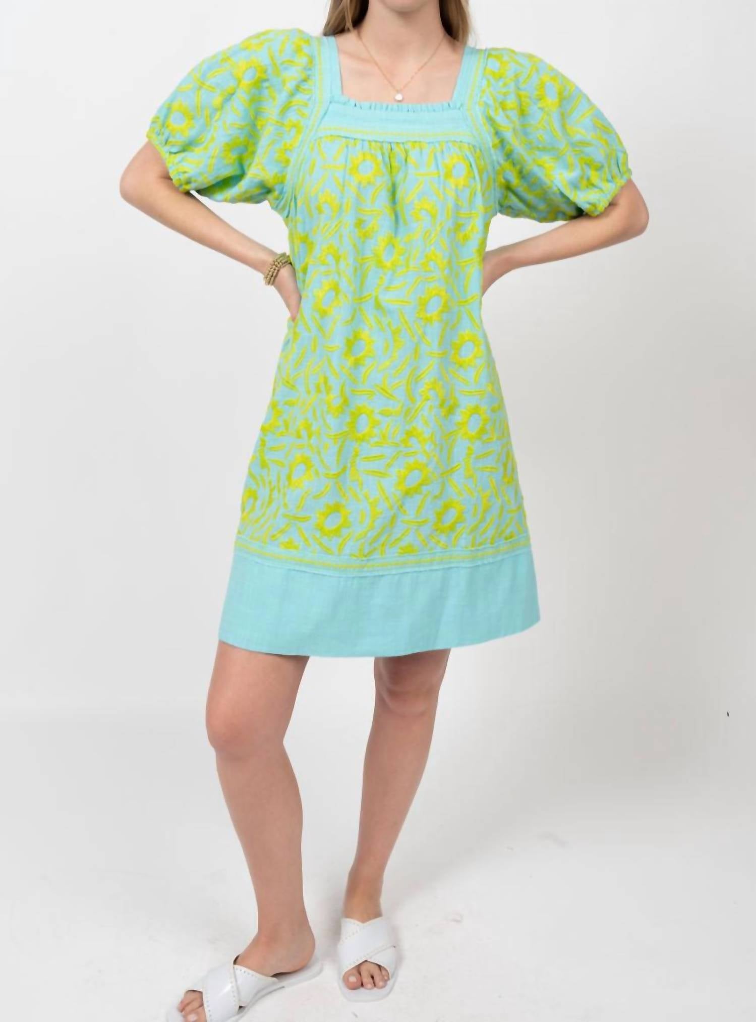 Платье миди настолько универсально, что варианты его ношения безграничны. Платье миди Solana от Sister Mary насыщенного бирюзового цвета станет модным дополнением гардероба и идеально подойдет для любого случая. Это платье миди длиной до локтя с короткими рукавами-буфами и вышивкой, подчеркнутыми изящным квадратным вырезом. Это платье-футляр с удобной застежкой на липучке легко ухаживать, его можно стирать и сушить в стиральной машине. Наслаждайтесь непринужденным стилем, который легко перейдет как от солнечного пляжного отдыха, так и для повседневной носки.
