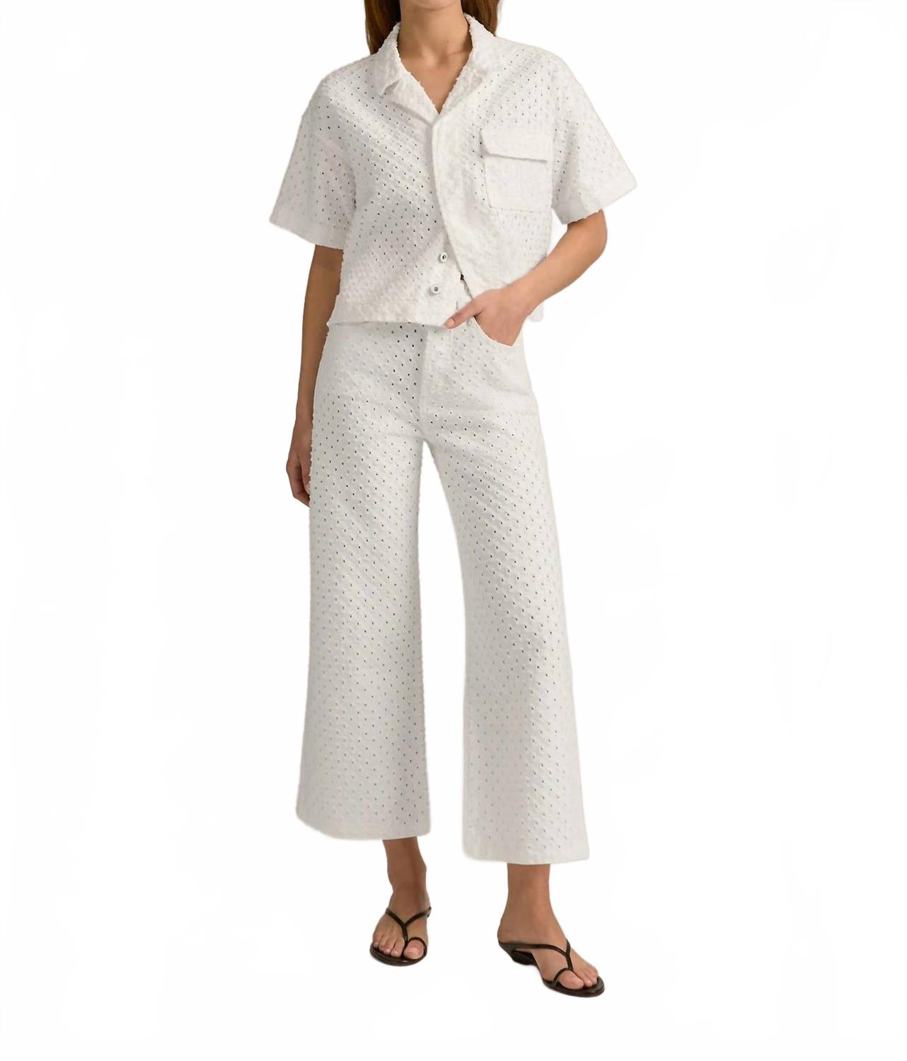 Классическая рубашка на пуговицах, которая никогда не выйдет из моды. Дополните свой гардероб рубашкой Micha от Favorite Daughter - уникальной вещью, созданной специально для весеннего сезона. Эта женская рубашка с короткими рукавами, свободным кроем, отложным воротником и разрезом по низу выполнена из 100% хлопка с текстурированными бахромчатыми деталями. Передний карман с клапаном и застежка на пуговицу добавляют стильности и функциональности. Эта рубашка цвета «аспен» длиной 21 дюйм идеально подходит для путешествий или в качестве подарка на День матери.