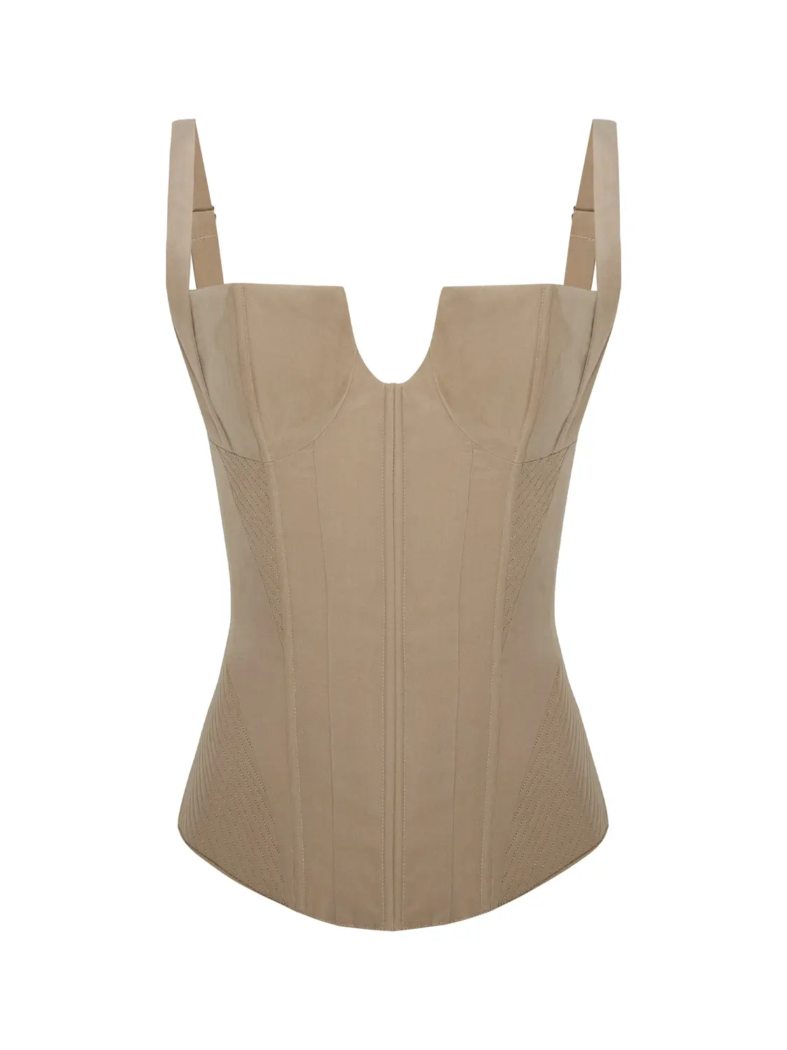 Этот топ с корсетным кроем облегает талию, создавая изящный и структурированный силуэт. Изготовленный из высококачественной ткани, он одновременно стильный и поддерживает фигуру, подчеркивая ее изгибы. Корсетные детали добавляют нотку элегантности и изысканности, делая его идеальным как для деловых, так и для повседневных образов.
