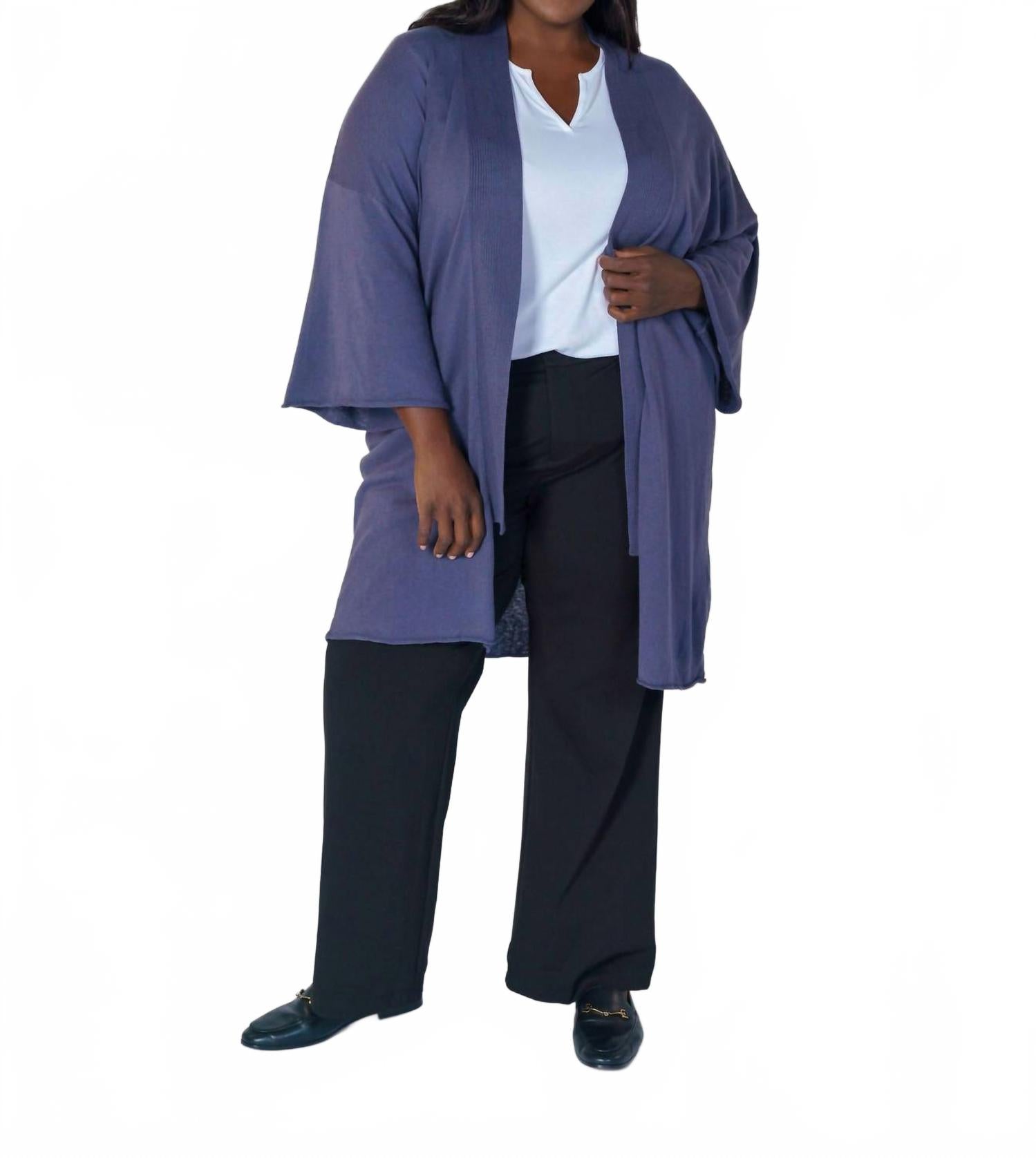 Откройте для себя кардиган из хлопка Mullein от BITTE KAI RAND - стильное и универсальное дополнение к вашему осеннему гардеробу. Этот фактурный синий кардиган с рукавами три четверти и элегантными длинными отворотами кимоно идеально подходит для многослойного ношения. Кардиган изготовлен из 55% вискозы и 45% нейлона. Он имеет застежку-липучку и круглый вырез горловины, что делает его изысканным выбором для путешествий и празднования Дня благодарения. Уход прост: ручная стирка и сушка в разложенном виде.