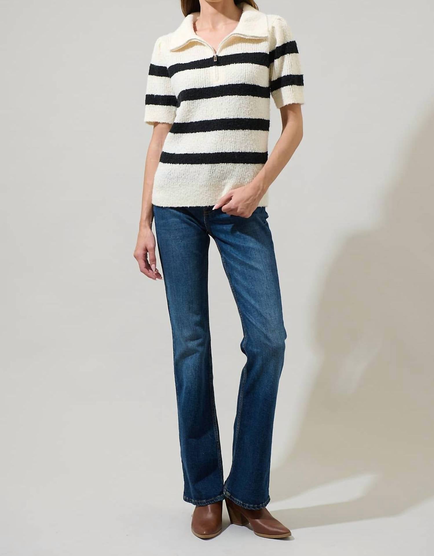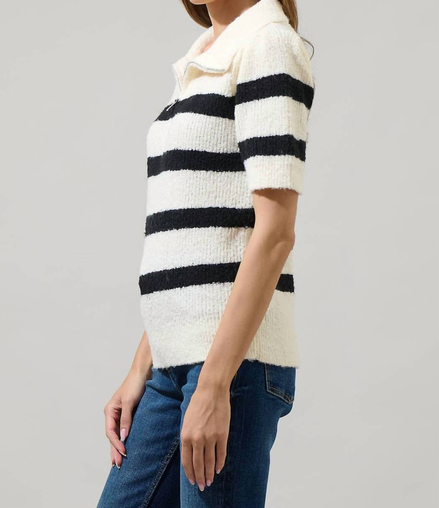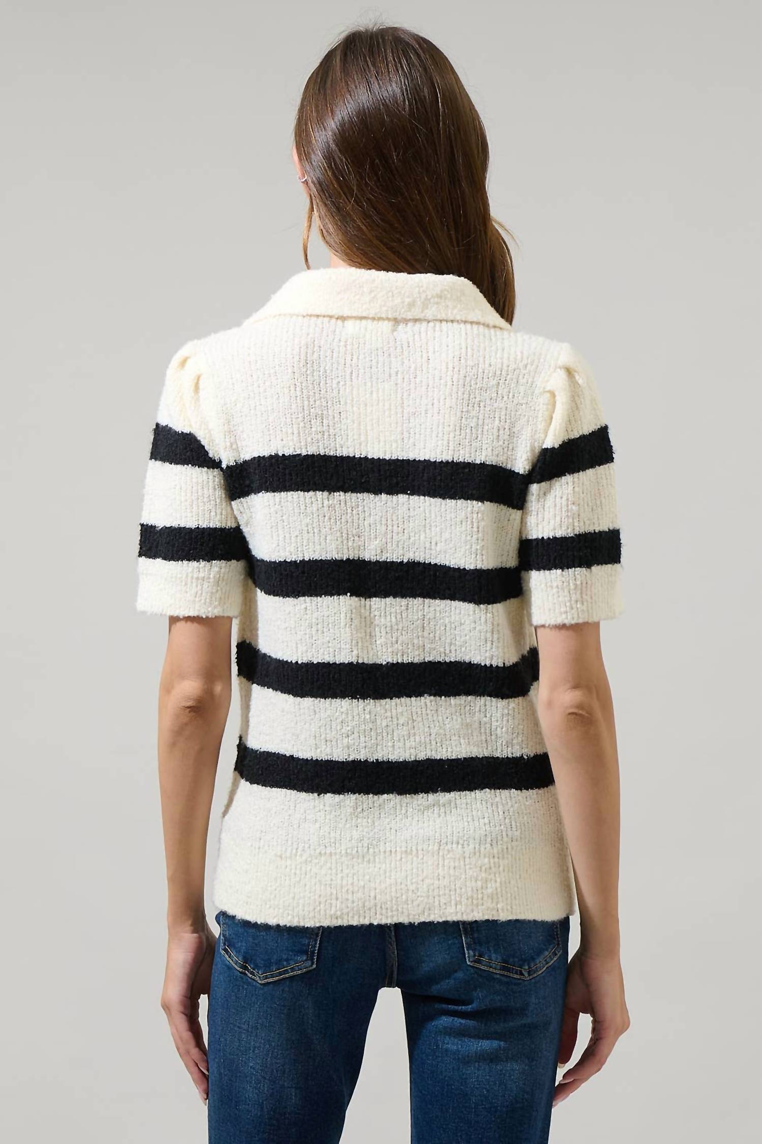 Ощутите идеальное сочетание комфорта и стиля в этом модном свитере с круглым вырезом, который легко дополнит ваш гардероб. Сочетайте его с любимыми джинсами и лоферами для создания идеального образа. Представляем топ Elinor Top от SUGARLIPS - шикарный полосатый свитер, который легко сочетает в себе элементы преппи и комфорта. Изделие с короткими рукавами, воротником-поло и изготовлено из 100% полиэстера. Стильная застежка-молния на половину длины на горловине. Изделие изготовлено в Китае. Для сохранения качества рекомендуется ручная стирка в холодной воде.