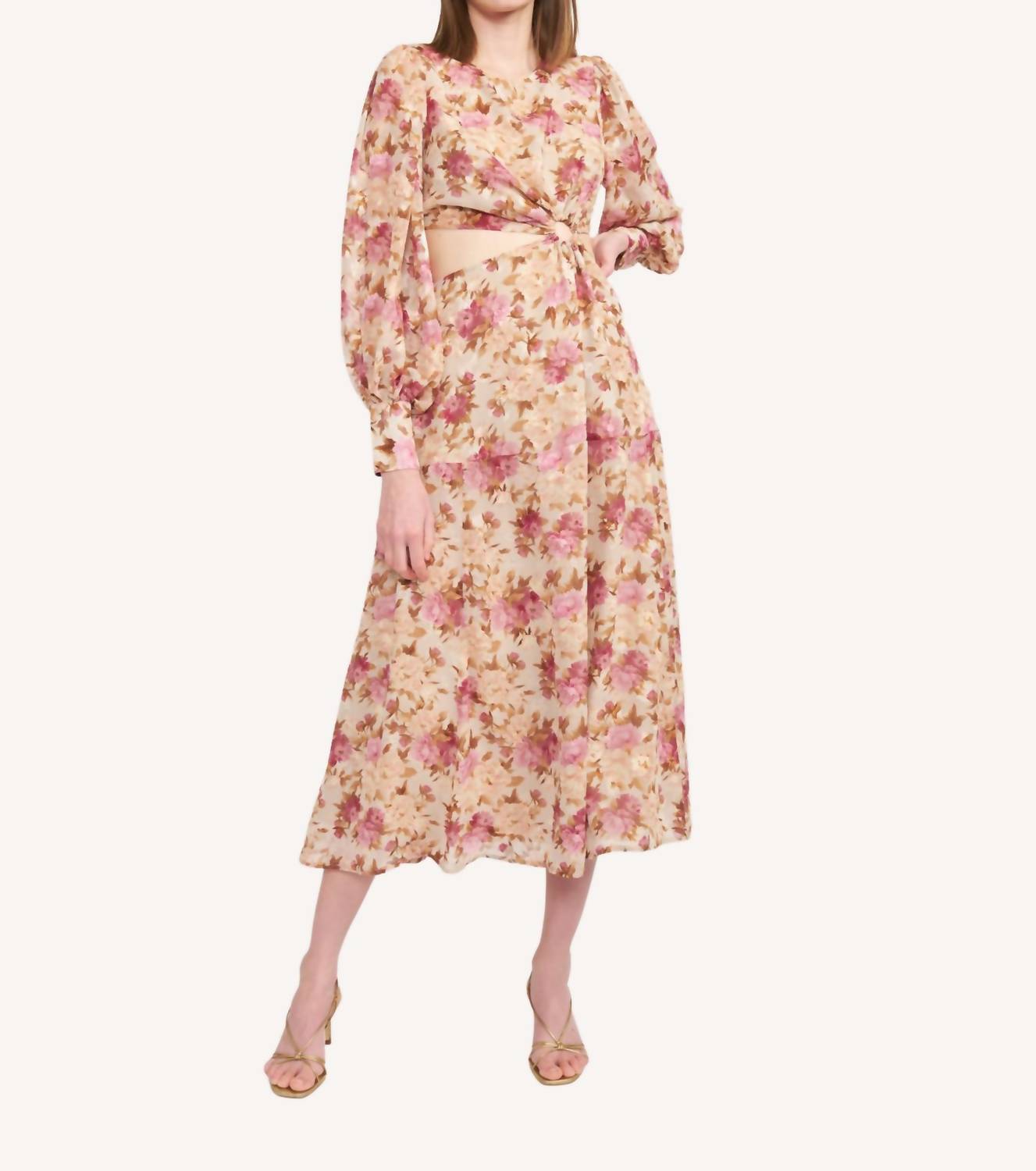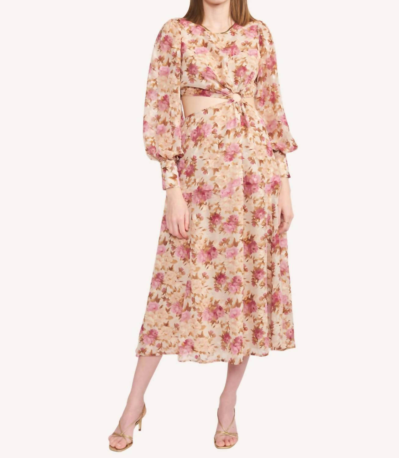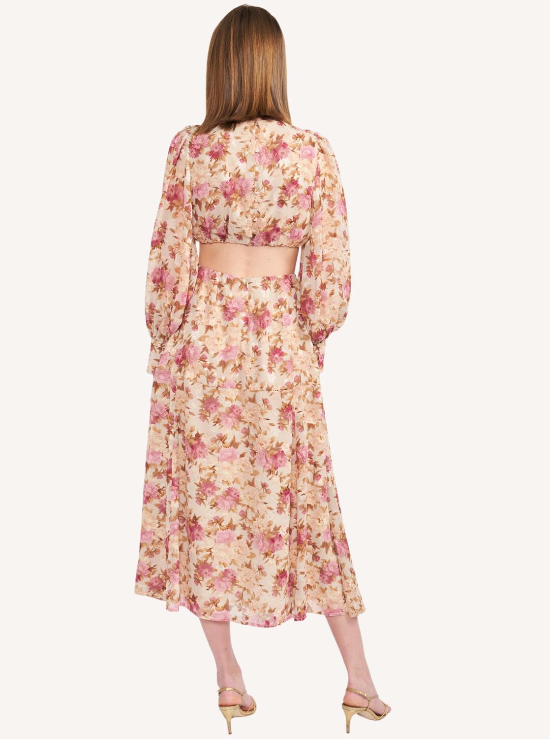 Платье идеальной длины существует. Дополните свой гардероб платьем Lissandra Midi Dress от En Saison - потрясающим изделием с цветочным принтом, которое излучает элегантность и женственность. Это платье средней длины с длинными прозрачными рукавами, круглым вырезом и изысканным вырезом в виде кольца, подчеркивающим романтичный А-образный силуэт. Изготовлено из 100% полиэстера, как основная ткань, так и подкладка создают роскошный образ. Застежка: молния. Страна происхождения: импортная. Уход: ручная стирка и сушка на вешалке. Рост модели: 178 см, размер S.