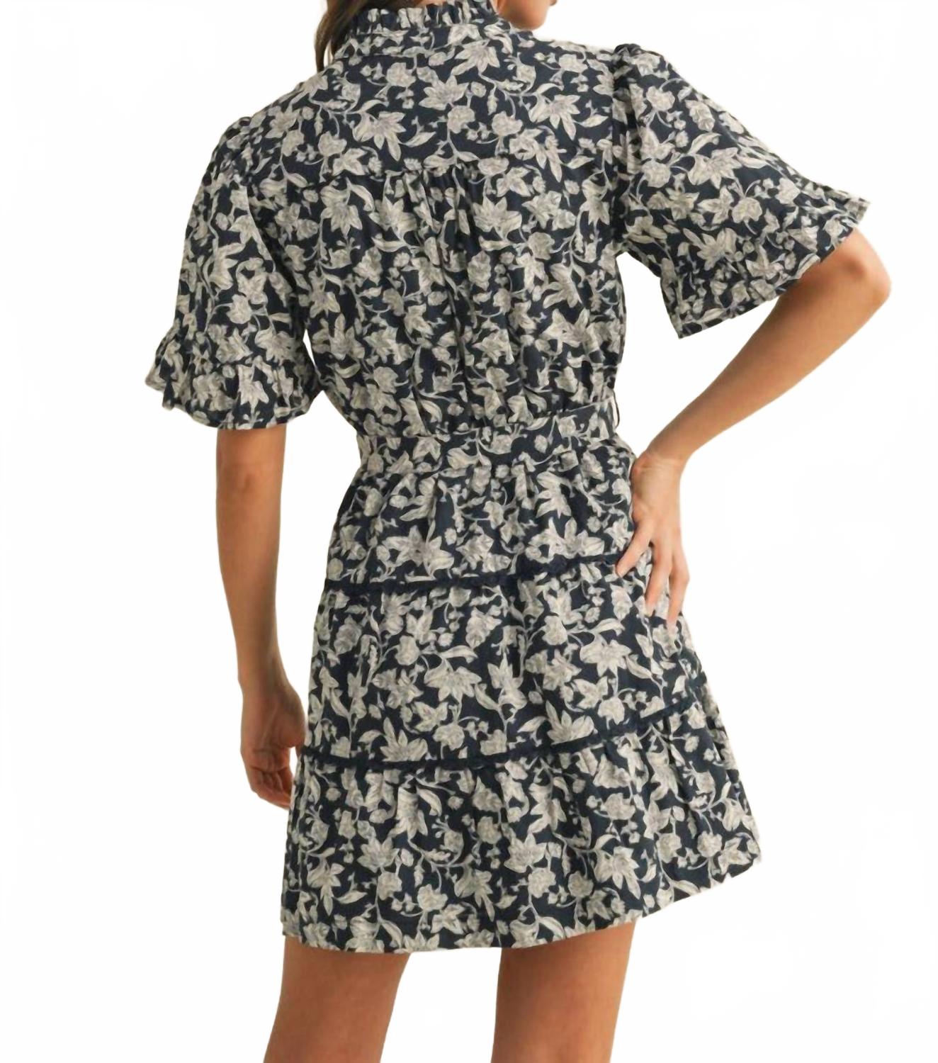 Погрузитесь в атмосферу бохо-шика в мини-платье с цветочным принтом и оборками на пуговицах &merci в классическом темно-синем цвете. Это мини-платье А-силуэта с очаровательными рукавами до локтя, оборчатыми манжетами и восхитительным оборчатым вырезом. Модель дополнена эластичным поясом с самозавязывающимся поясом и многоуровневыми швами, украшенными отделкой из кружева крючком. Платье легко ухаживать: достаточно стирать в стиральной машине и сушить на горизонтальной поверхности. Застежка на пуговицы.