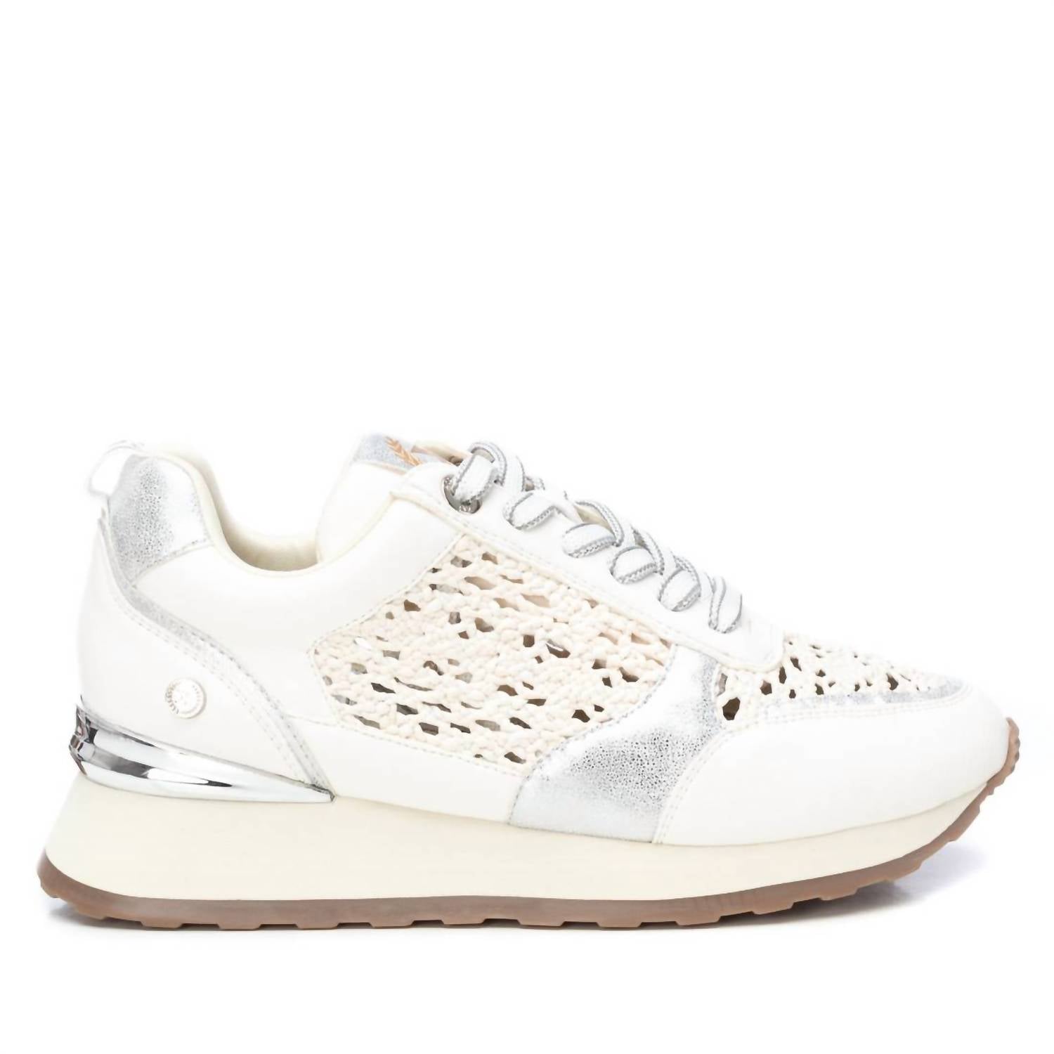 Добавьте новизны в свой повседневный стиль с женскими кроссовками-тренерами Xti из элегантной искусственной кожи. Эти кроссовки сочетают в себе шнуровку, металлическую отделку и детали из рафии, добавляя изысканности вашему повседневному образу. Низкий каблук-танкетка и закругленный носок обеспечивают комфорт, не жертвуя элегантностью. Благодаря нескользящей подошве с металлическим акцентом на пятке эти кроссовки идеально подойдут как для пробежек, так и для встреч с друзьями.