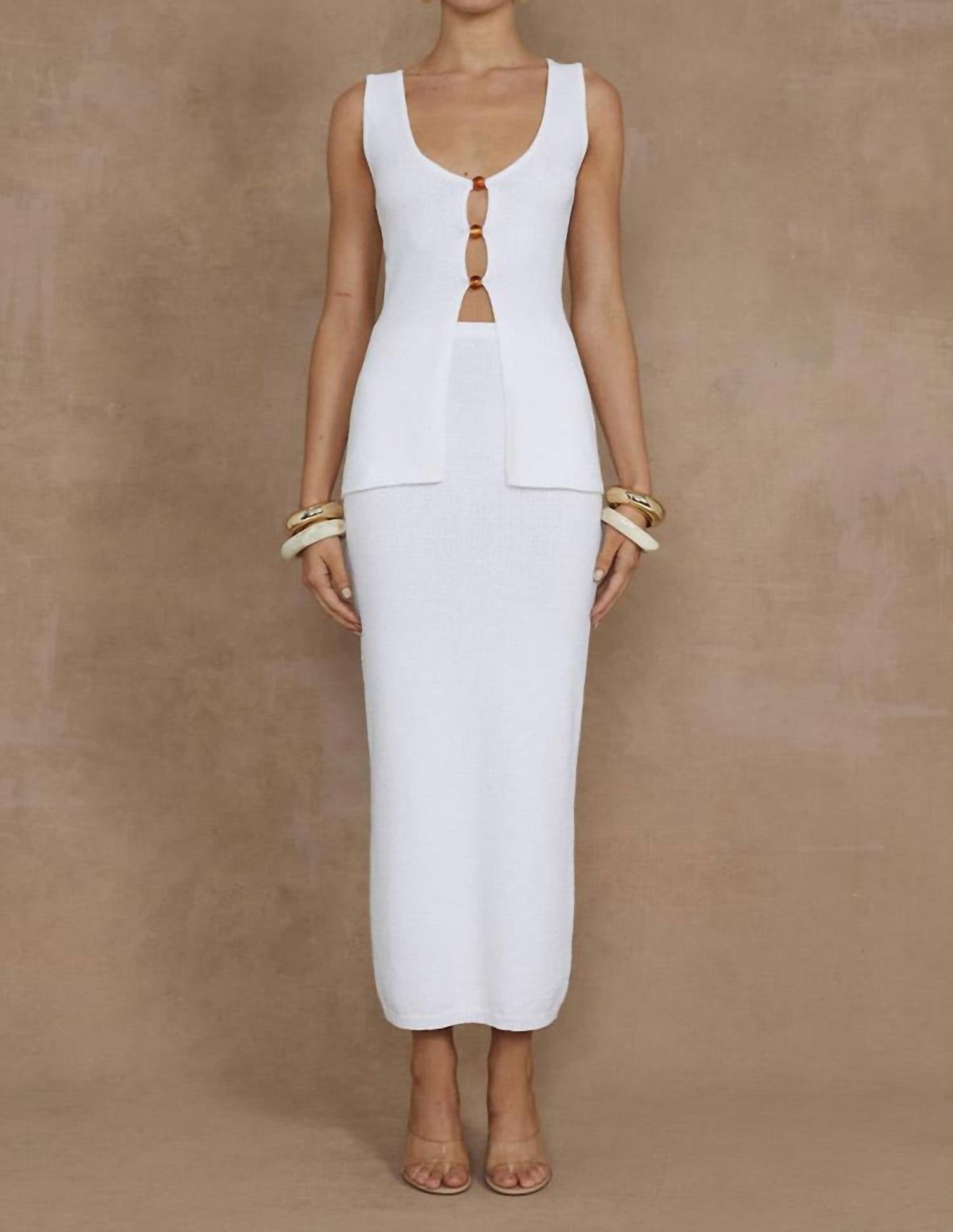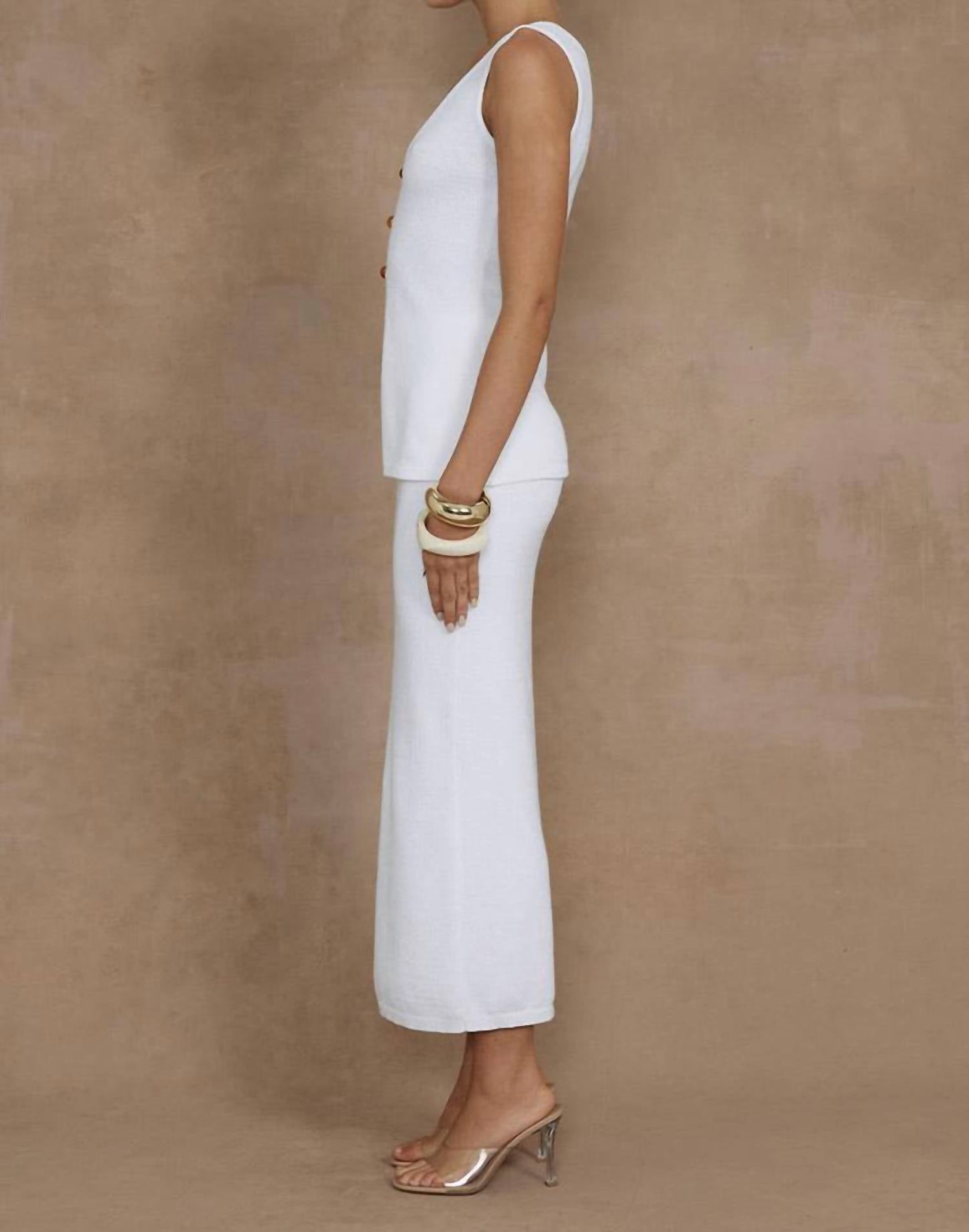 Покажите все необходимое в этой изысканной юбке миди. Представляем юбку миди Nadina от Runaway the Label - изысканную модель белого цвета, которая без труда воплощает элегантность. Юбка с эластичным поясом выполнена из роскошного трикотажа (50% акрил, 25% хлопок и 25% нейлон), что обеспечивает комфорт и универсальность благодаря эластичности без подкладки. Благодаря застежке-липучке, юбка имеет классический силуэт миди, идеально подходящий для дополнения топом Nadina для создания полного ансамбля. Подробные инструкции по уходу за изделием см. на этикетке.