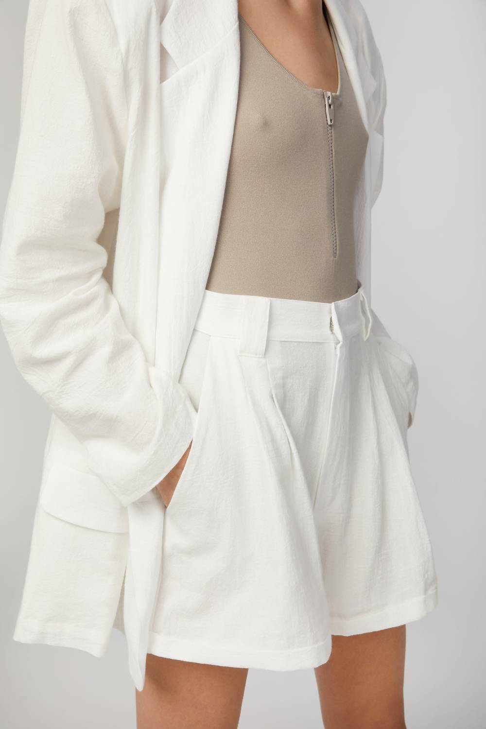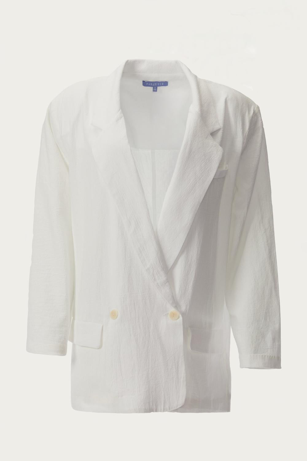Наслаждайтесь воздухопроницаемостью этого легкого пляжного блейзера из жатой хлопковой марли. Марля тонкая и легкая, а благодаря хлопковому составу она также дышащая. Эта хрустящая марля имеет мятую структуру, что придает ткани приятную на ощупь текстуру. Сохраняйте целостность и сочетайте с подходящими шортами Jamie.
