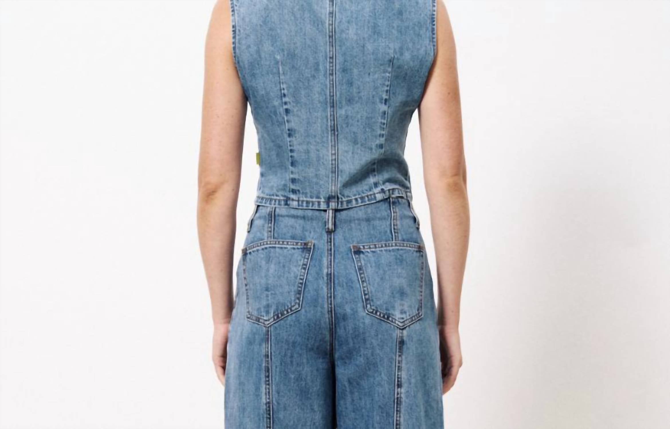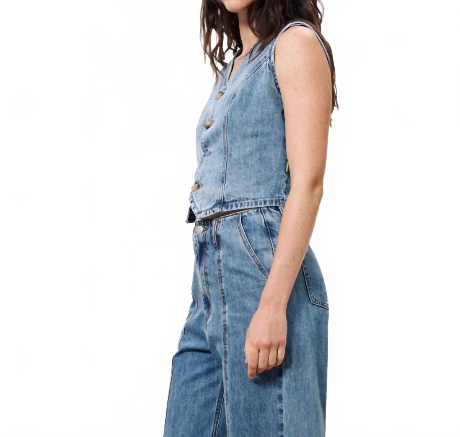 Накиньте этот жилет поверх полностью черного наряда, чтобы создать безупречно элегантный образ. Ощутите изысканное очарование джинсового жилета Carima от FRNCH - незаменимого летнего аксессуара для женщин, ценящих сдержанную роскошь. Этот джинсовый жилет без рукавов однотонного синего цвета отличается изысканными швами, создающими элегантный силуэт. Изготовленный из 100% хлопка, он имеет классический V-образный вырез и надежную застежку на пуговицы для стильного и комфортного образа. Идеально подходит для концертов или добавит элегантности любому образу.