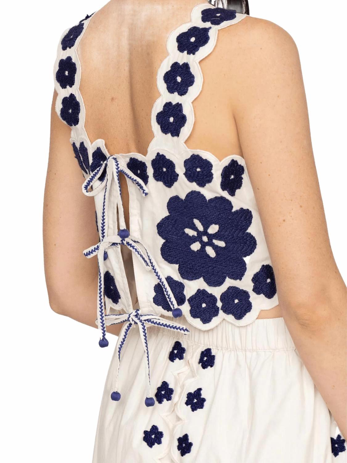 Сочетайте этот укороченный топ с любимыми джинсами с высокой талией или юбкой макси. Представляем топ SEA Catrine Top - потрясающий женский укороченный топ красивого синего оттенка, идеально подходящий для стильного летнего образа. Этот топ без рукавов изготовлен из 100% хлопка с цветочным узором, вышитой цветочной аппликацией и элегантными фестончатыми краями. Он имеет свободный крой, элегантный квадратный вырез и завязку сзади для идеальной завязки. Этот топ длиной 17 дюймов, изготовленный в Индии, требует химчистки для сохранения идеального состояния.