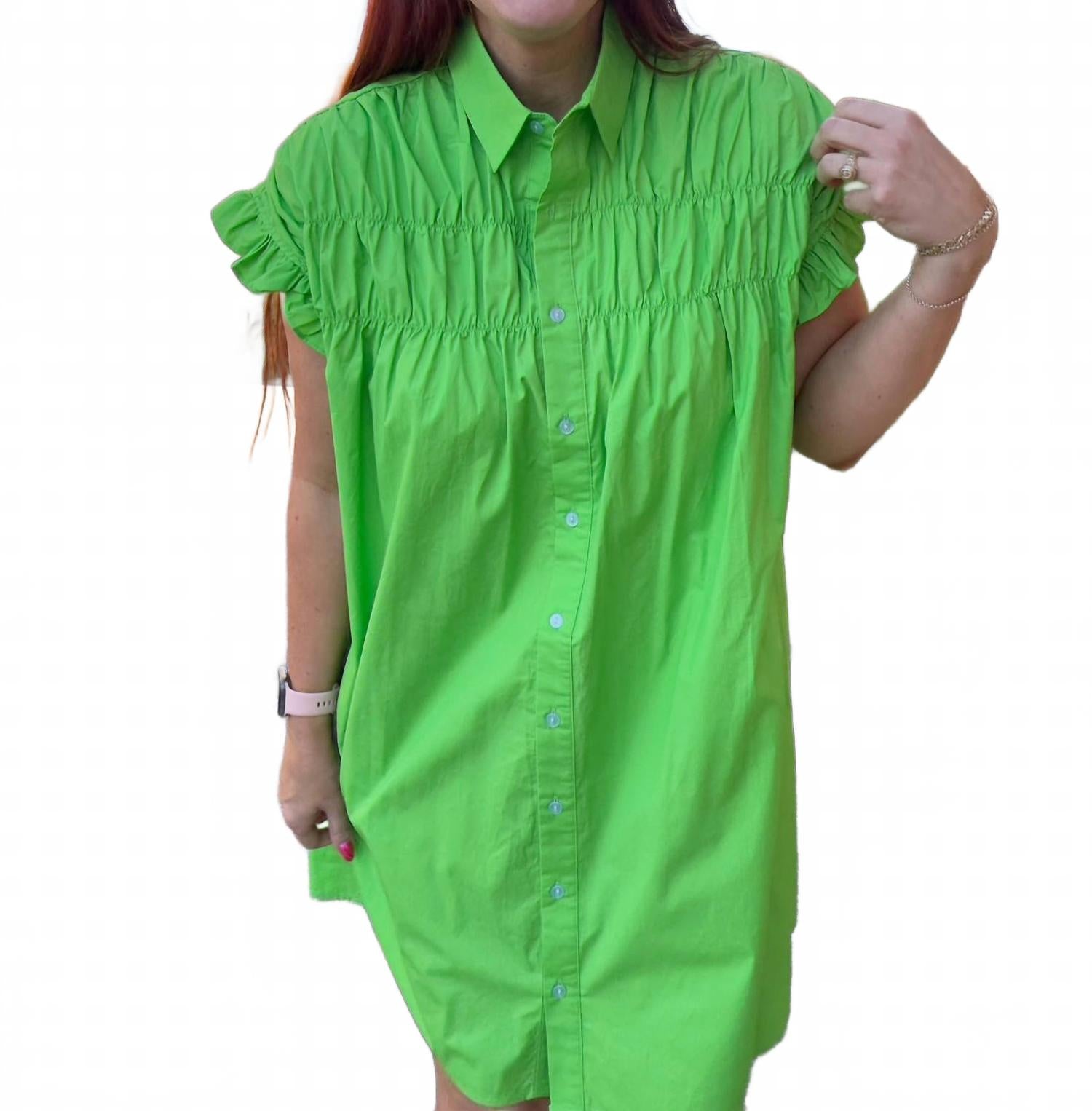 Дополните образ любимыми сандалиями, чтобы создать непринужденно шикарный образ. Платье Elphaba от Lili Sidonio, выполненное в ярком ярко-зеленом оттенке, станет ярким дополнением к любому гардеробу. Это платье-трапеция с короткими рукавами выполнено из дышащего хлопка, с рукавами-крылышками и классическим воротником. Застежка на пуговицы делает его стильным и практичным как для повседневной носки, так и для праздничной вечеринки. Ухаживайте за этим эффектным изделием, стирая его в стиральной машине, чтобы оно оставалось таким же свежим, как и ваш образ.